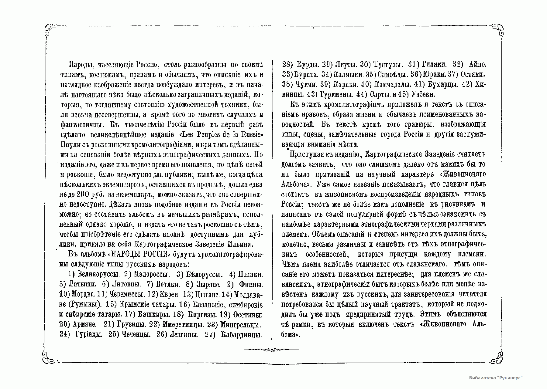 Масштабное научно-популярное исследование «Народы России», подготовленное известными российскими этнографами в период либеральных реформ Александра II, в эти годы пользовалось значительным читательским интересом. Это хорошо иллюстрированное обзорное издание, охватывающее необъятные географические и этнокультурные пространства, быт и нравы ногочисленных народов и народностей (выделено 45 основных народностей и народов), проживавших в Российской империи, и поныне представляется весьма познавательной книгой, далеко не потерявшей своей научно-практической значимости.