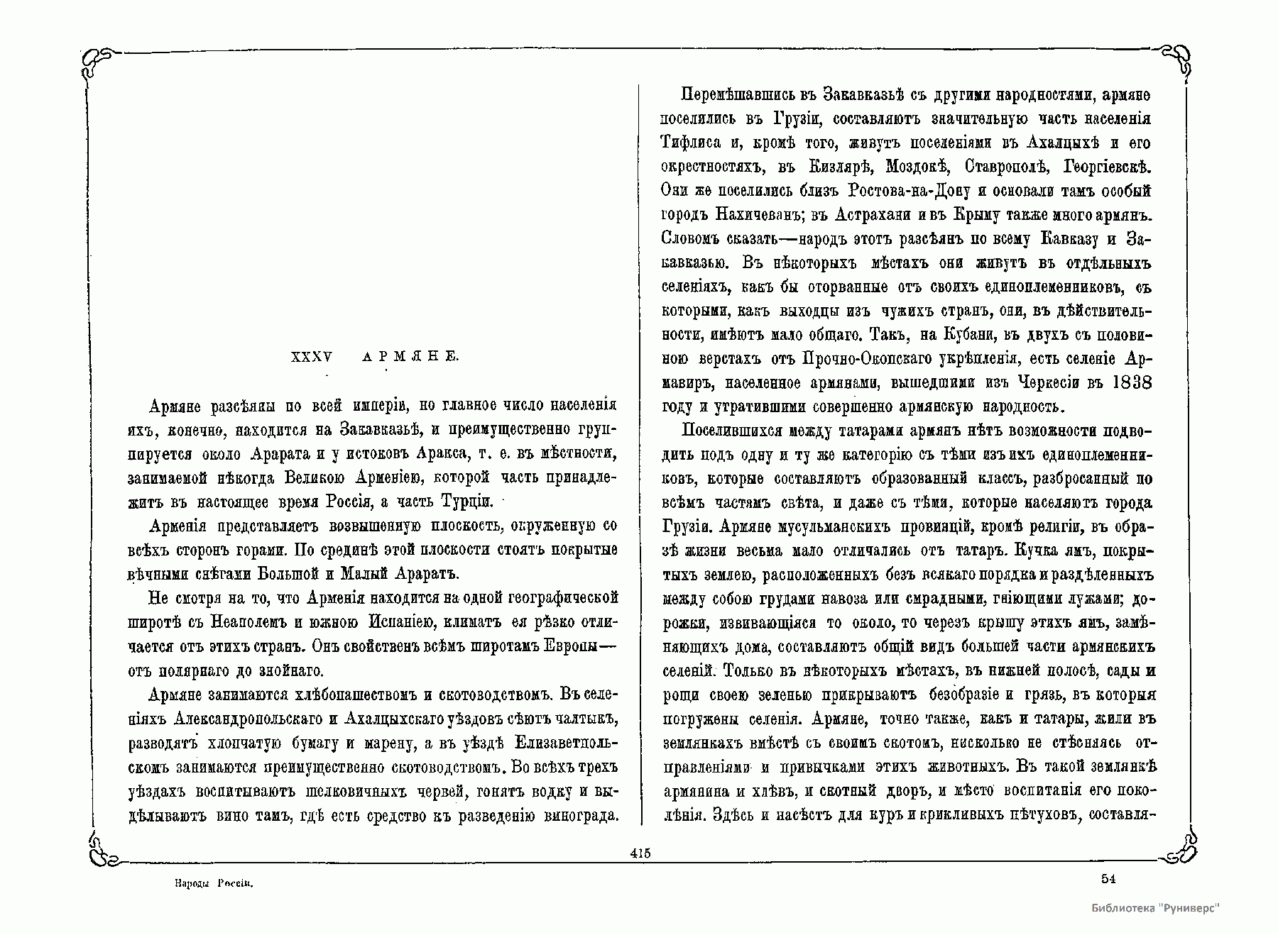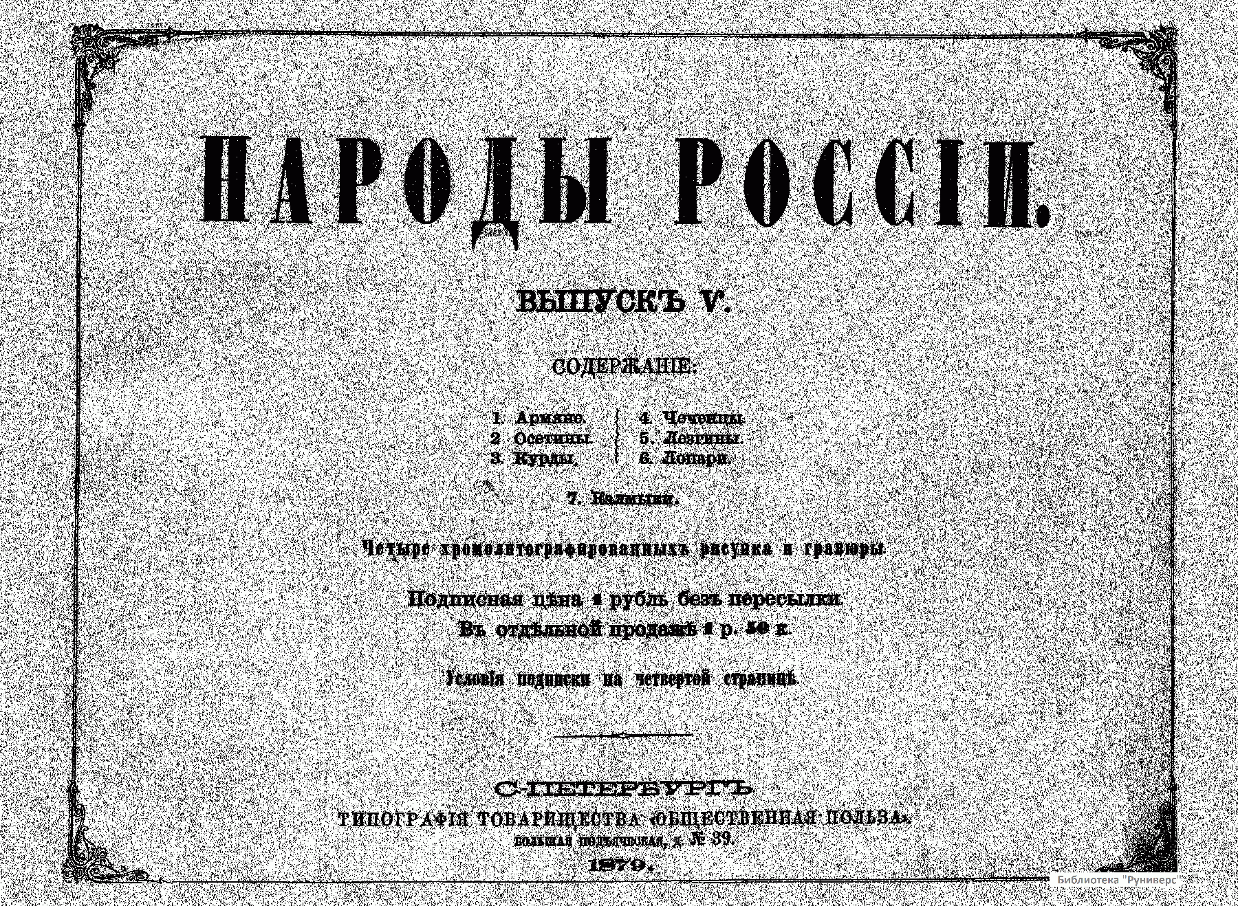 Масштабное научно-популярное исследование «Народы России», подготовленное известными российскими этнографами в период либеральных реформ Александра II, в эти годы пользовалось значительным читательским интересом. Это хорошо иллюстрированное обзорное издание, охватывающее необъятные географические и этнокультурные пространства, быт и нравы ногочисленных народов и народностей (выделено 45 основных народностей и народов), проживавших в Российской империи, и поныне представляется весьма познавательной книгой, далеко не потерявшей своей научно-практической значимости.
