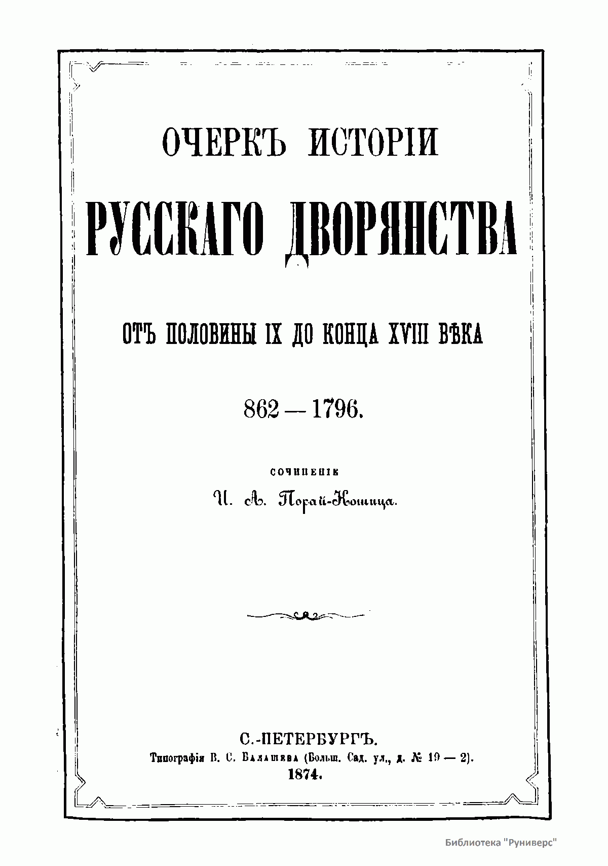Очерк истории русского дворянства от первой половины IX до конца XVIII века 862-1796