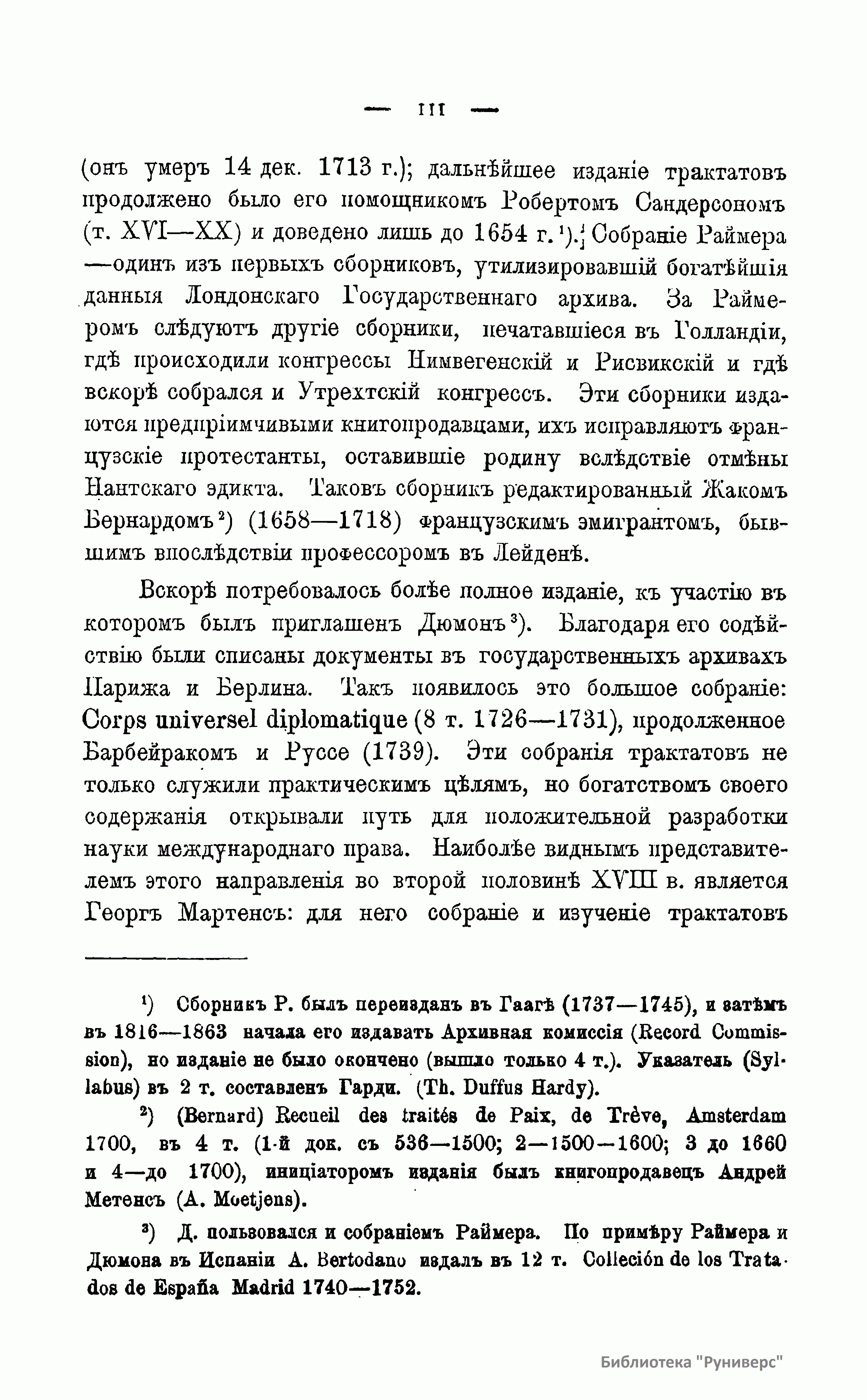 . Значительный интерес представляет вводная статья автора-составителя, в которой проведен обстоятельный анализ истории международно-правовых актов в Европе и их публикации, начиная с конца XVI столетия. Как отмечает автор, что значение публикации международных трактатов особенно возросло после окончания Тридцатилетней войны 1618-1648 гг. В дальнейшем публикация подписанных международных соглашений стала общепринятой международной нормой.