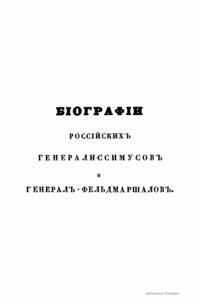 Бiографiи россiйскихъ генералиссимусовъ и генералъ-фельдмаршаловъ съ 48 портретами. Часть третья