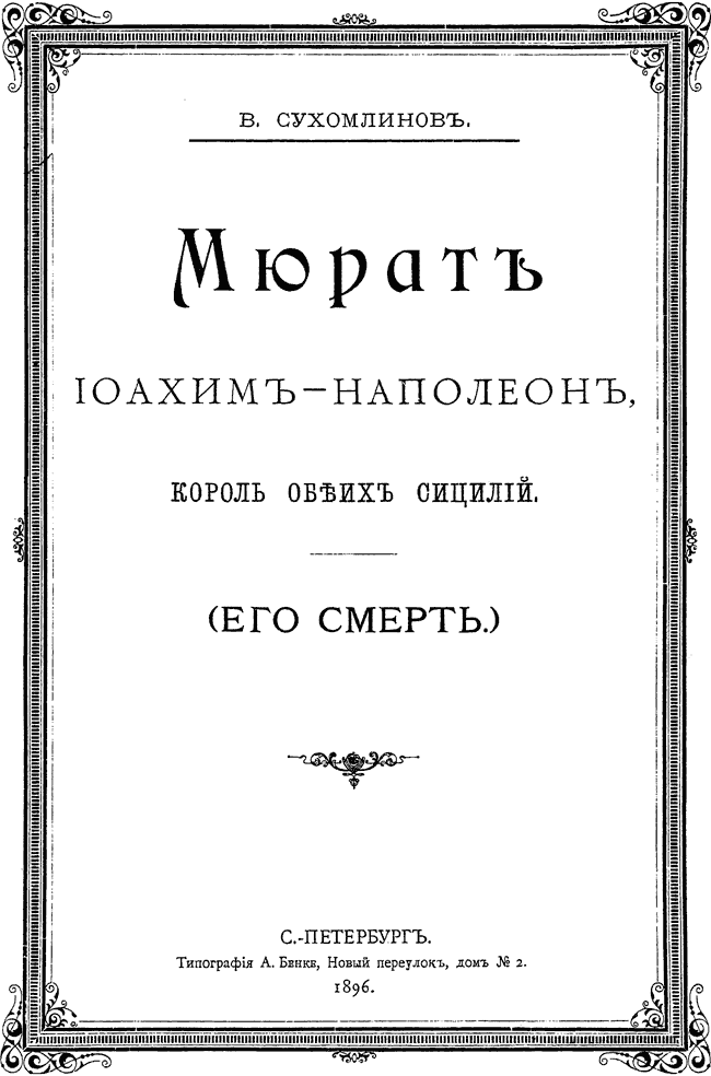 Небольшая брошюра – апологетическое описание жизни, доблестей и смерти знаменитого наполеоновского маршала. Ее автор к моменту издания – командир драгунского полка, затем – генерал, начальник Генерального штаба, а с марта 1909 по июнь 1915 года - военный министр России.
