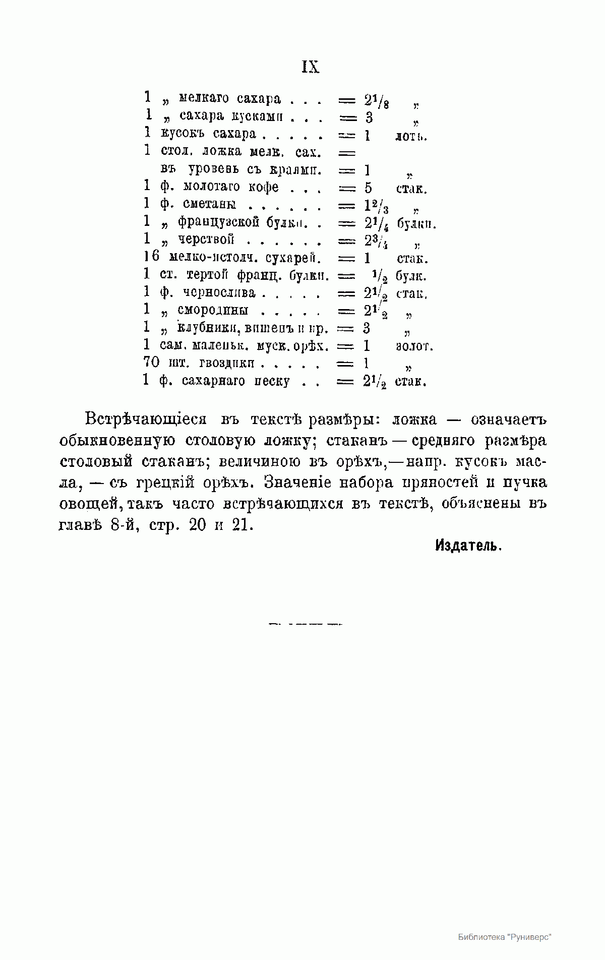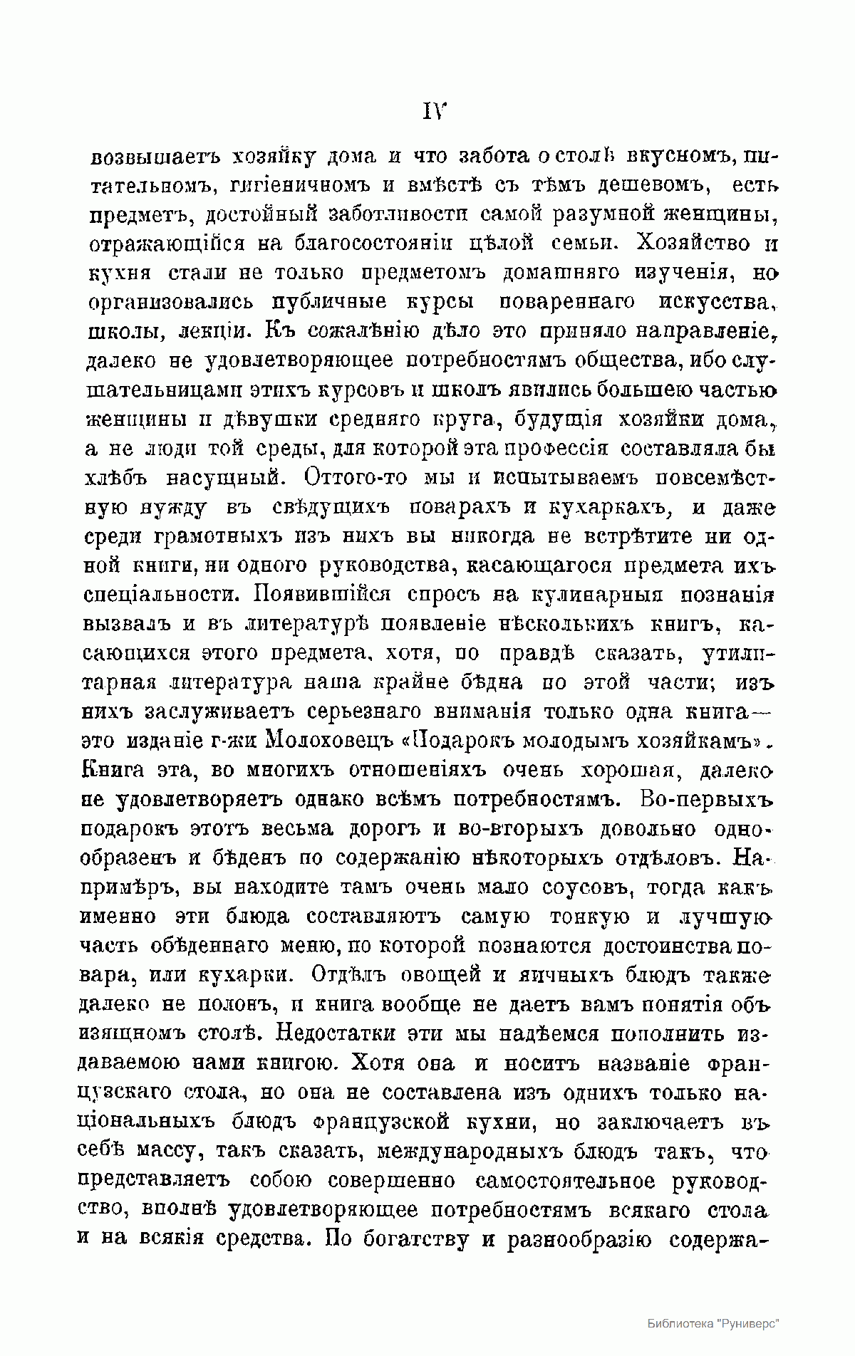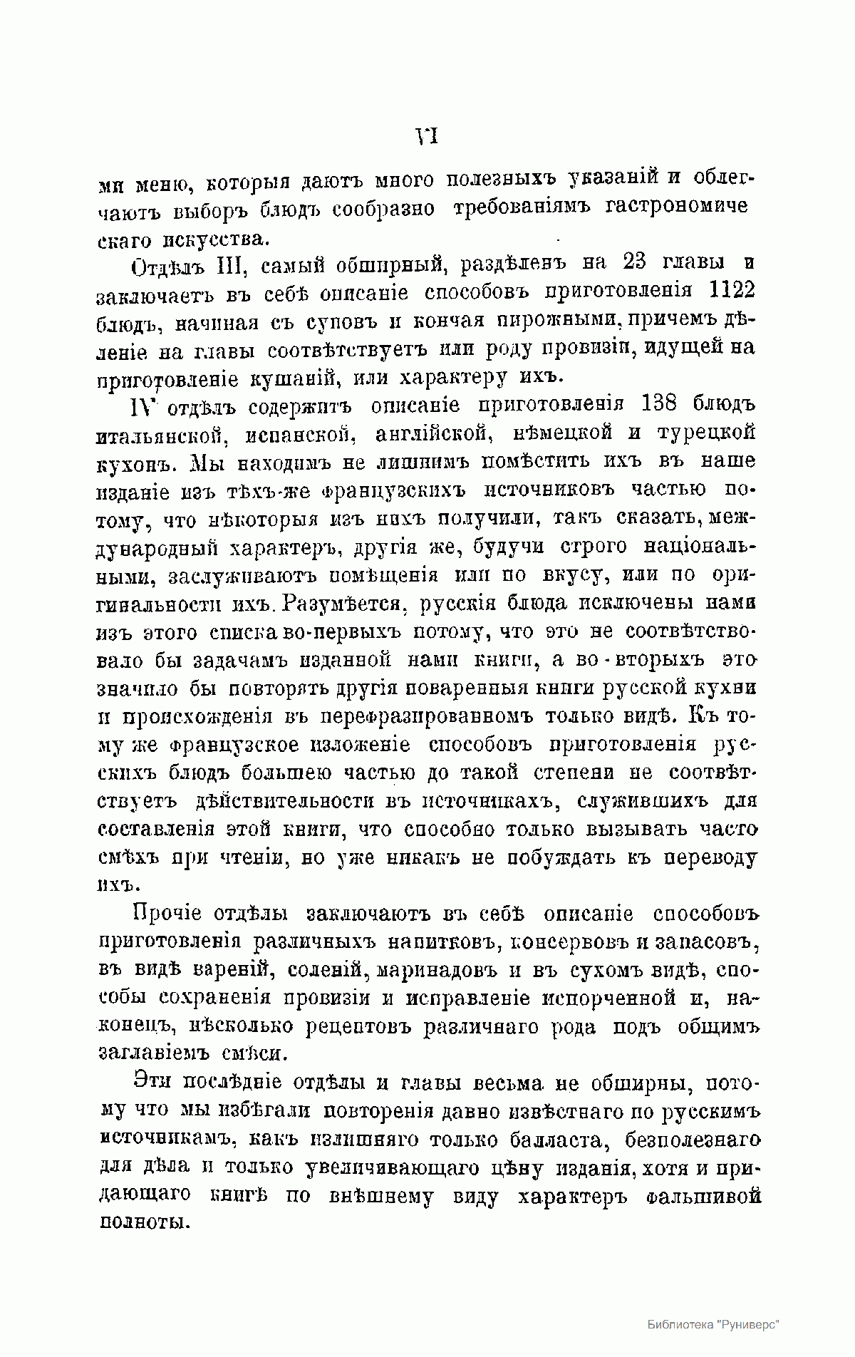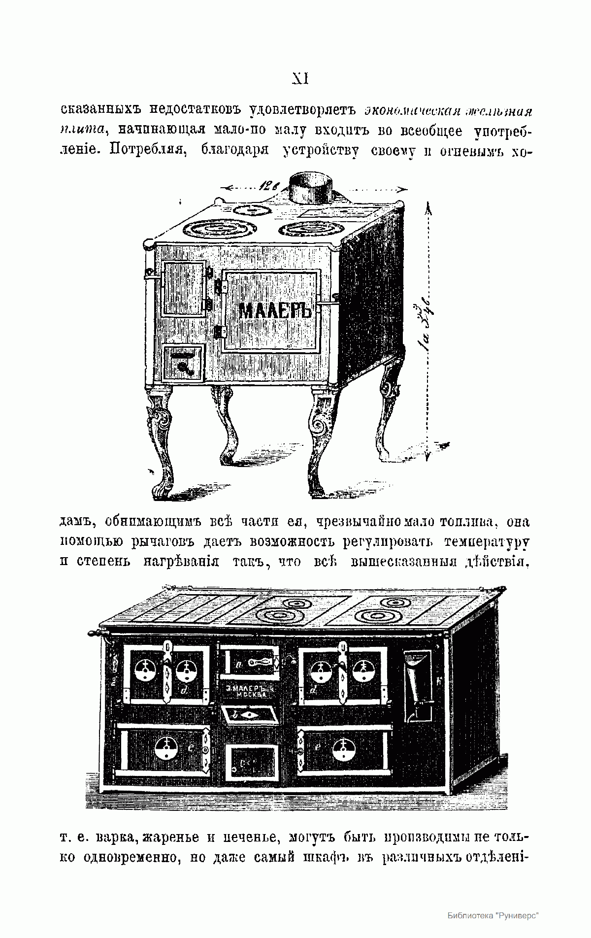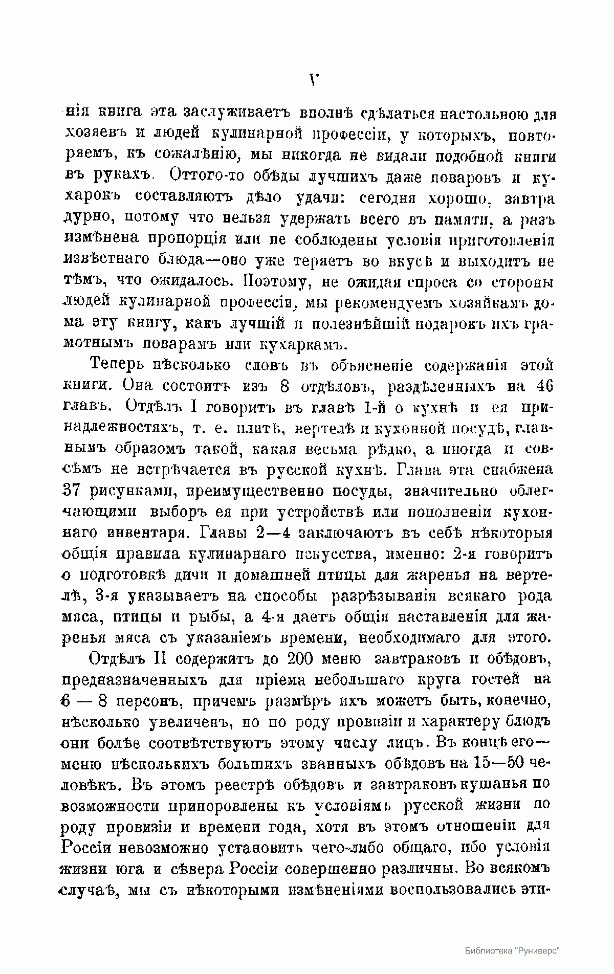 Настольная книга для хозяек, лиц кулинарной профессии, гастрономов и для всех вообще интересующихся поваренным искусством, содержащая описание более 1100 блюд, около 200 меню обедов и завтраков, около 150 национальных блюд других европейских народов и множество рецептов разных заготовок, с рисунками кухонных плит, посуды и кухонных принадлежностей новейших образцов, а также убранства некоторых блюд.
