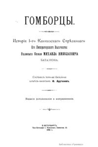 Гомборцы. Исторiя 1-го Кавказскаго Стрѣлковаго Его Императорскаго Высочества Великаго Князя Михаила Николаевича баталiона