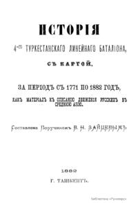 История 4-го Туркестанского линейного батальона, с картой, за период с 1771 по 1882 год, как материал к описанию движения русских в Среднюю Азию