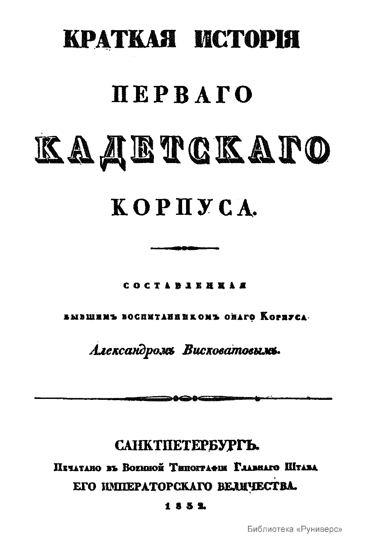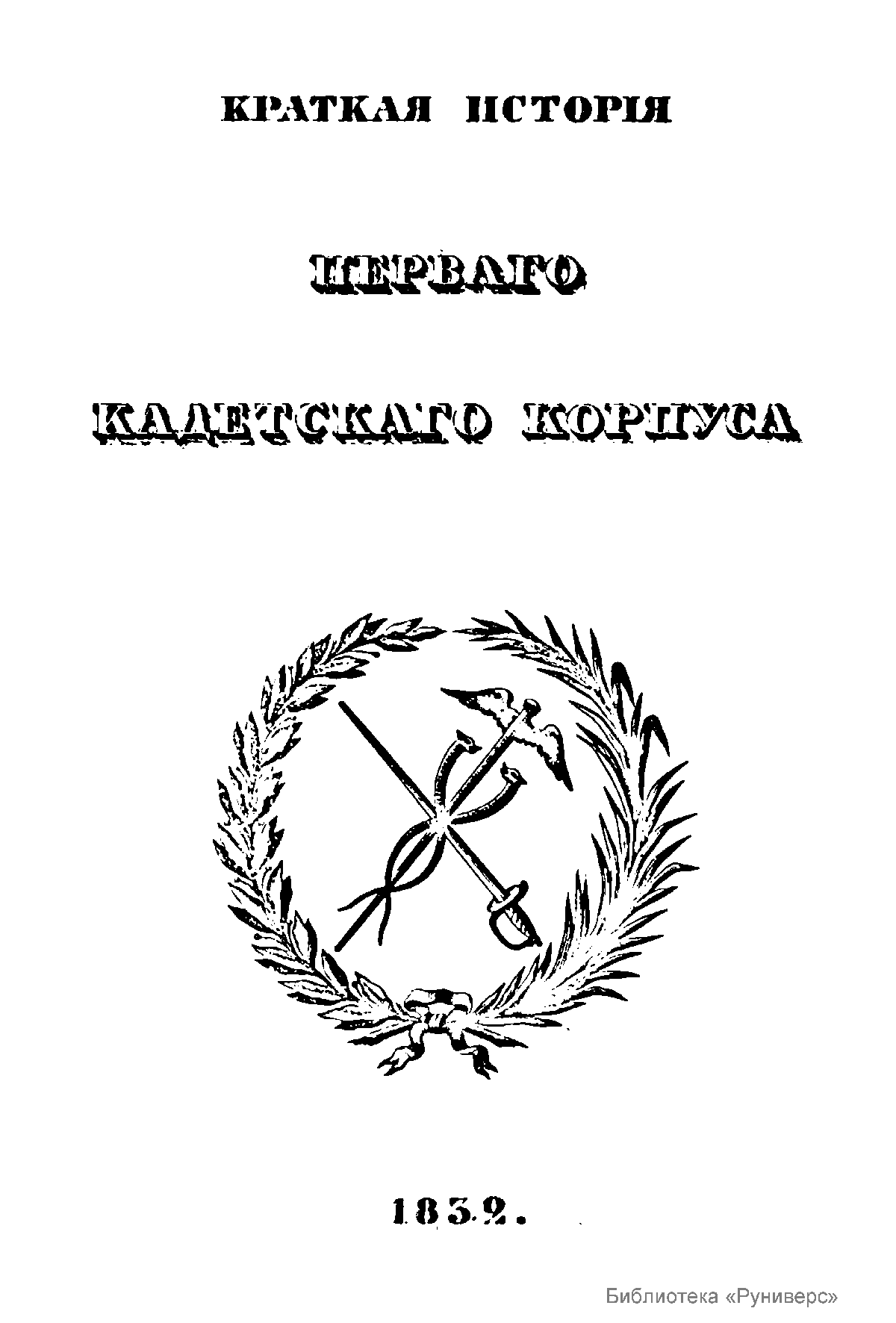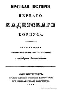 Краткая исторiя перваго кадетскаго корпуса
