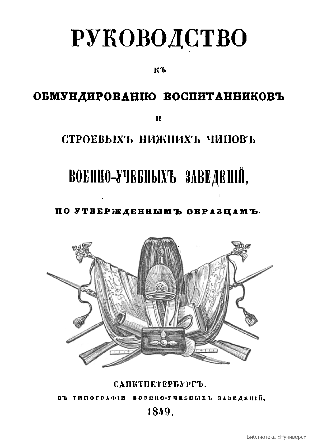 Руководство къ обмундированiю воспитанниковъ и строевыхъ нижнихъ чиновъ военно-учебныхъ заведенiй, по утвержденнымъ образцамъ
