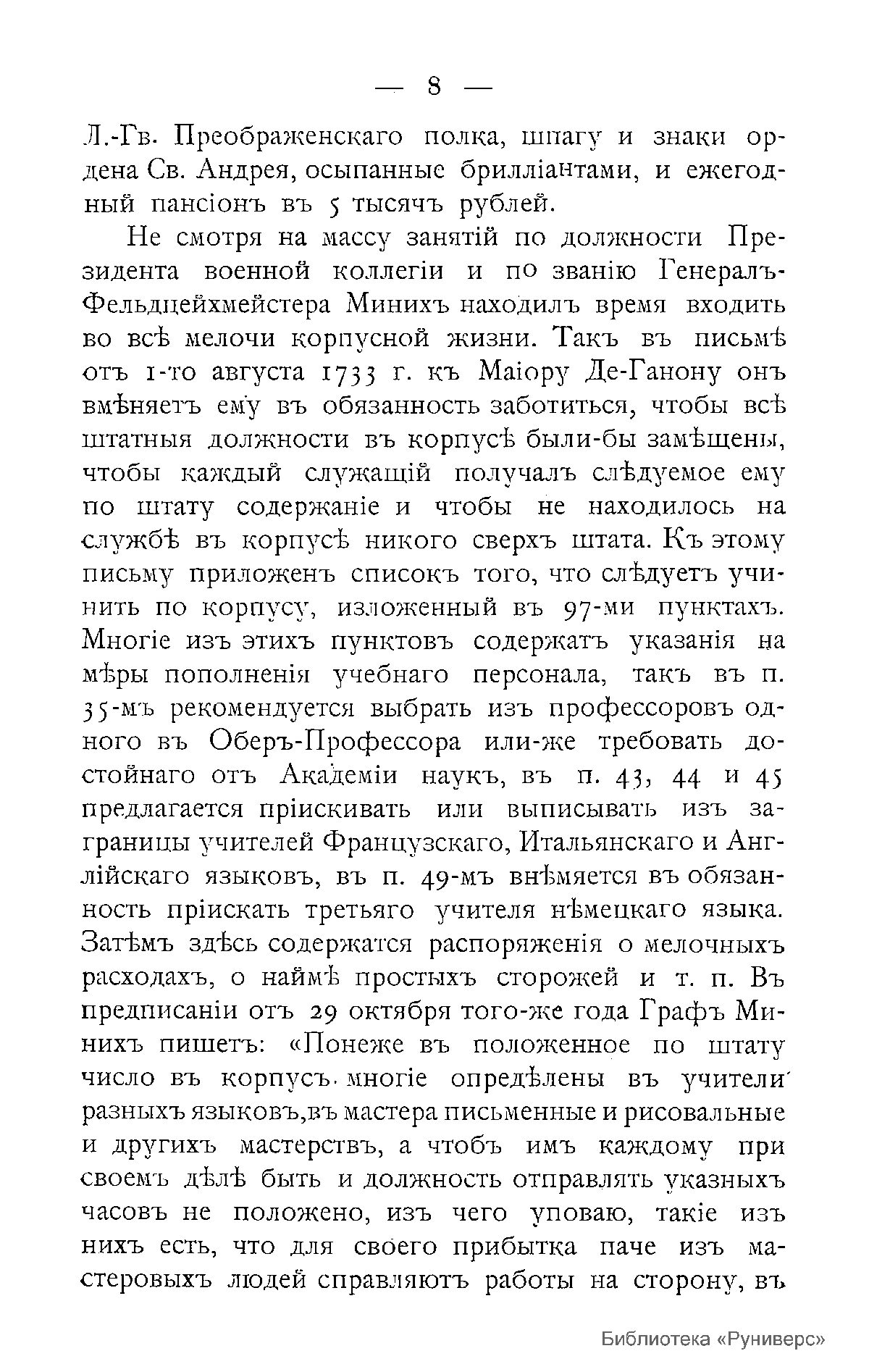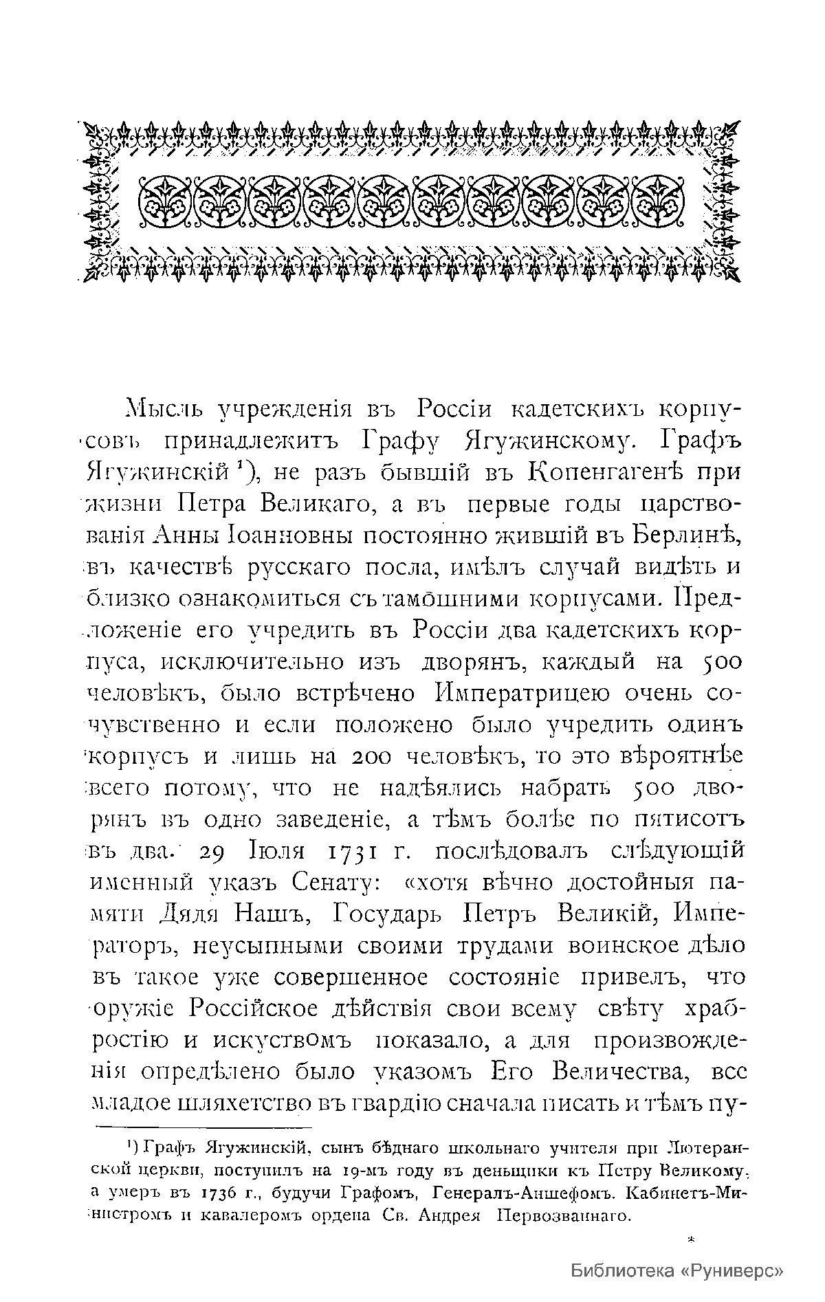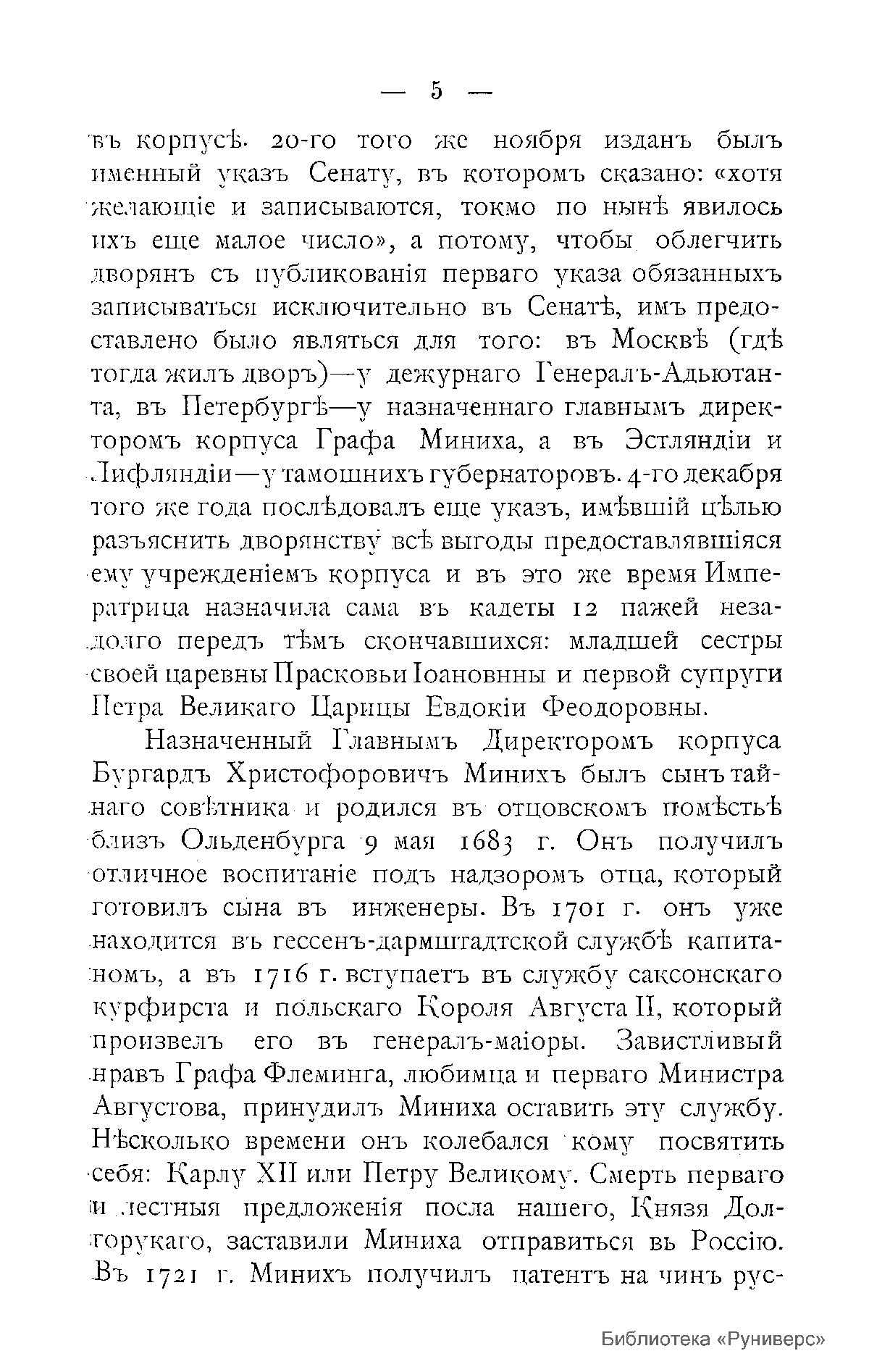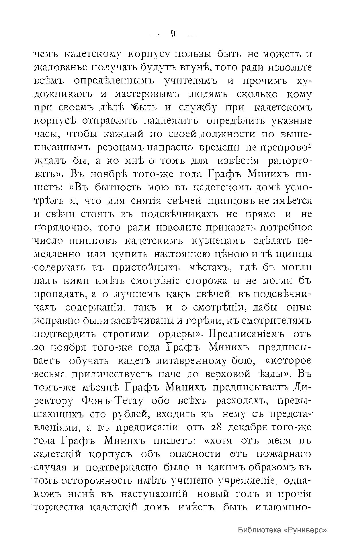 Сухопутный шляхетный кадетскiй корпусъ (нынѣ 1-й кадетскій корпусъ) при графѣ Минихѣ. (с 1732 по 1741)