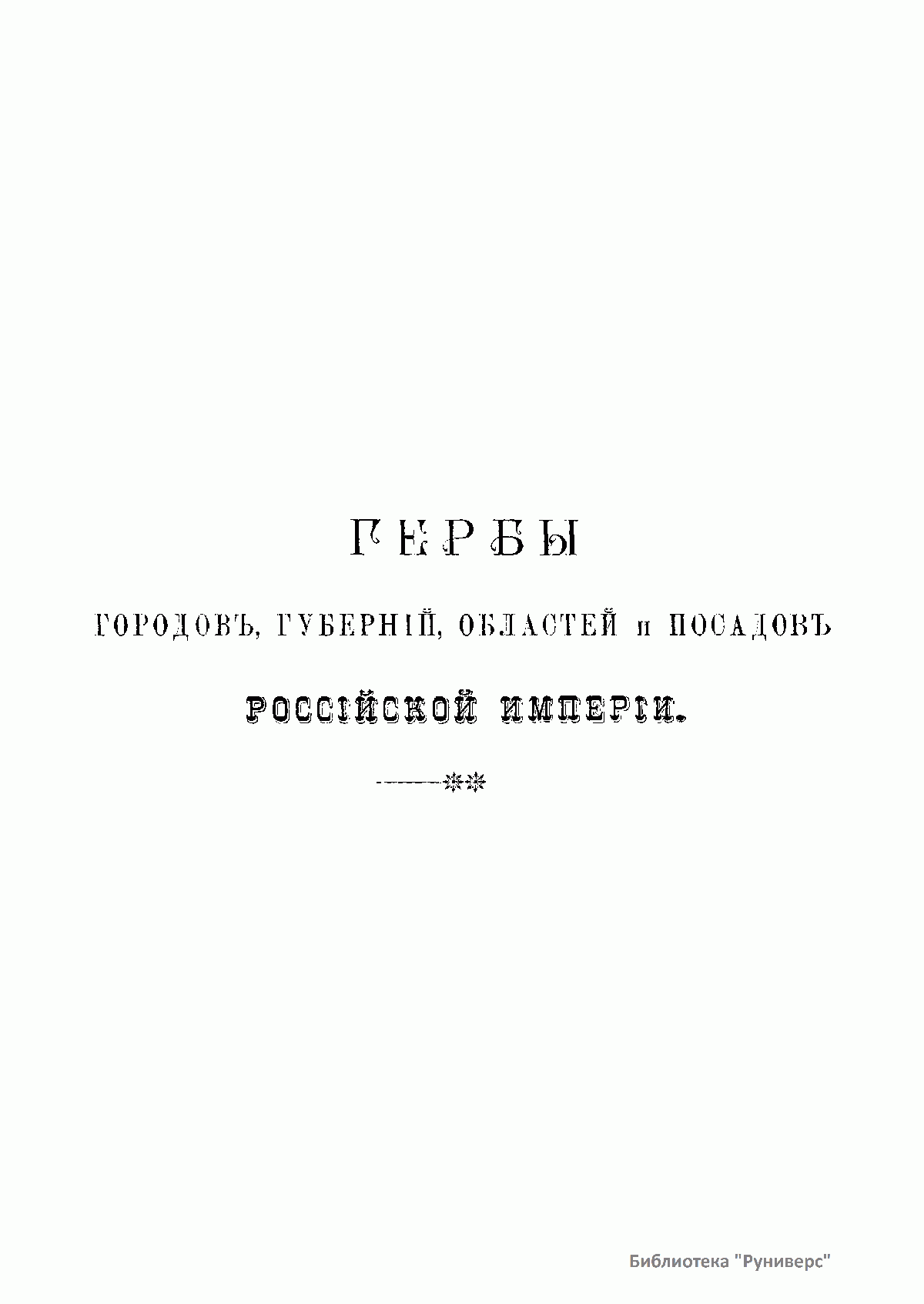 Гербы городовъ, губернiй, областей и посадовъ Россiйской Имперiи, внесенные въ полное собранiе законовъ съ 1649 по 1900 годъ