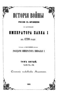 История войны России с Францией в царствование Императора Павла I в 1799 году. Том V