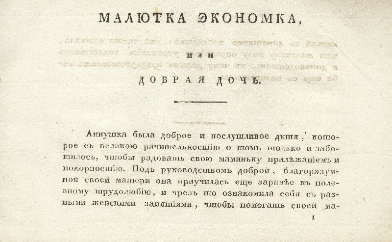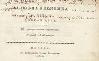 Издание «Малютка экономка...» служило юным читательницам «наставлением в различных предметах хозяйства». Подобного рода литература в ту эпоху чаще всего могла быть переводной; примеры такого познавательного и нравоучительного жанра брались в основном из немецкой литературы. Книга построена в виде описаний-рассказов к картинкам: ребенок приучался внимательно рассматривать сюжет, изображенный на иллюстрации, а затем уже ему читали текст или он сам вчитывался в него, как бы повторяя еще раз все то, что увидел на картинке. Рассказ обычно и начинается со слов «На сей картинке видите вы...».