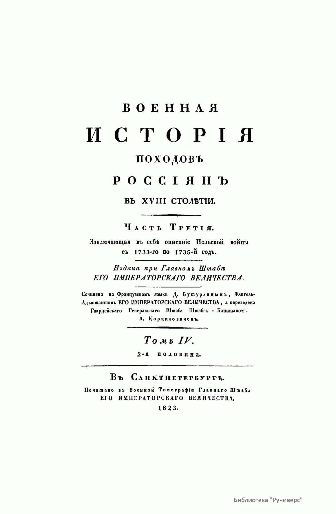 Военная исторiя походовъ россiянъ въ XVIII столѣтiи. Часть третiя. Томъ IV. 2-я половина