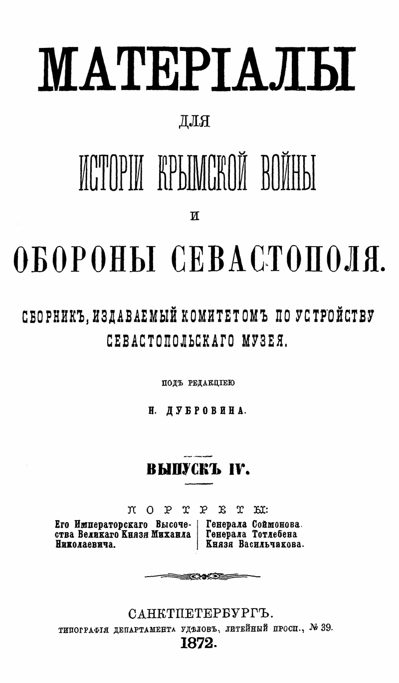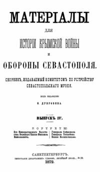 Материалы для истории Крымской войны и обороны Севастополя. Выпуск IV