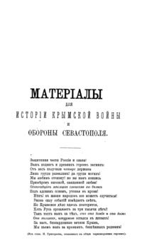 Материалы для истории Крымской войны и обороны Севастополя