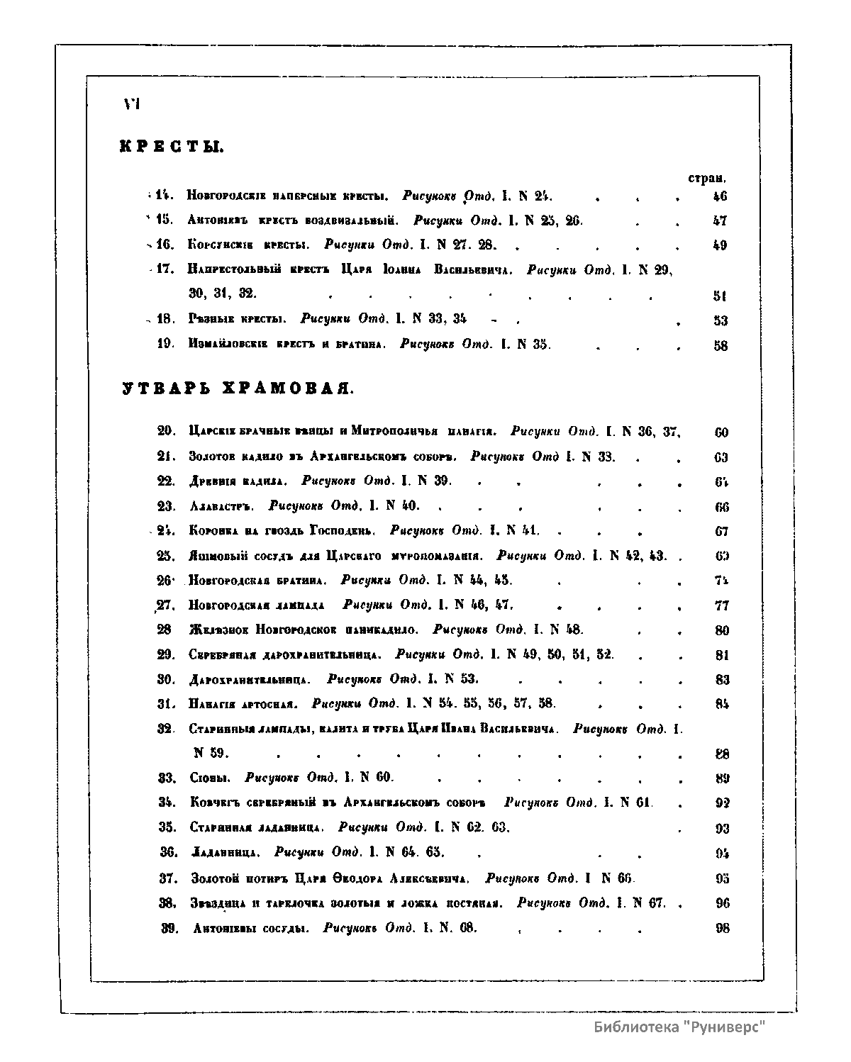 Отделение I. Св. иконы, кресты, утварь храмовая и облачение сана духовного