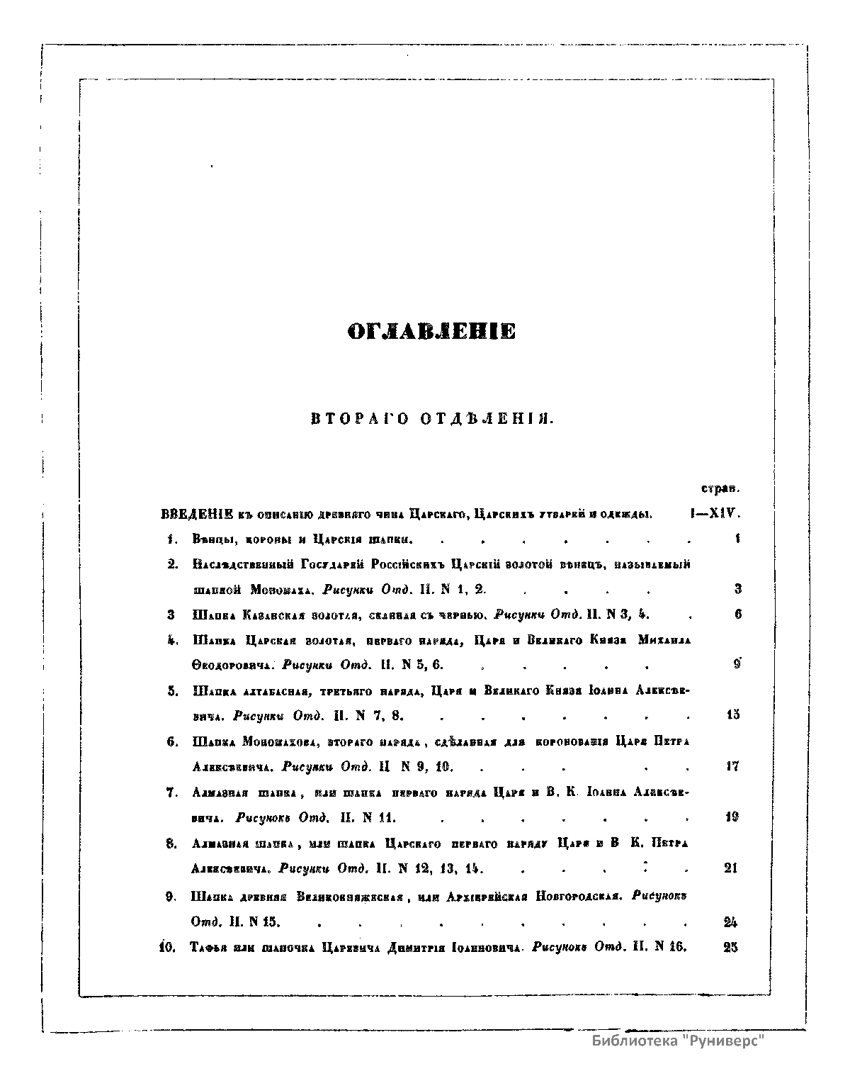Отделение II. Древний чин царский, царские утвари и одежды
