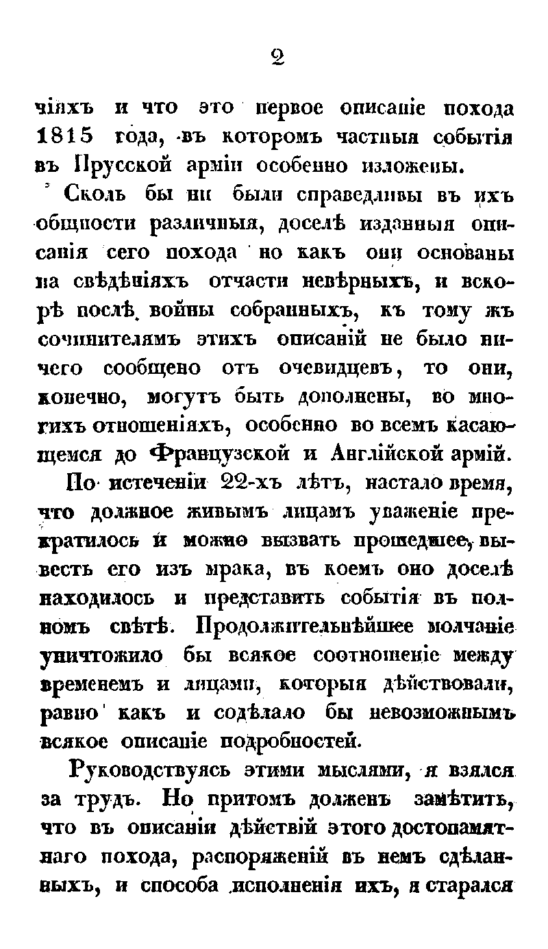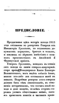 Данное уникальное по своей полноте издание содержит детальный анализ боевой деятельности союзных армий антинаполеоновской коалиции в военной кампании 1815 года (так называемые «Сто дней» после триумфального возвращения из ссылки с о. Эльба «императора французов» Наполеона Бонапарта). Обзор боевых действий союзных войск против Наполеона был подготовлен майором прусской армии К. фон Дамицем на основе донесений и личных воспоминаний прусского генерала К. фон Грольмана, занимавшего в этом походе пост генерал-квартирмейстера (начальника штаба) прусской армии под командованием фельдмаршала князя Блюхера-Вальштадского. Генерал Грольман фактически являлся соавтором этого военно-исторического труда, привлекшего значительный интерес военных специалистов всех европейских государств. Первое издание двухтомного описания кампании 1815 г. было опубликовано на немецком языке в Берлине в 1837-1838 гг., а затем было переведено на французский язык с комментариями. В дальнейшем, в 1841-1842 гг. этот труд был переведен на русский язык исправляющим должность директора Военно-учёного комитета видным военным администратором и переводчиком генерал-лейтенантом А.И. Хатовым и опубликован в «Военном журнале», а затем – в качестве самостоятельного издания. В книге описываются военные приготовления, бежавшего из ссылки Наполеона, подготовка сил союзников по антинаполеоновской коалиции соединение прусской (Нижне-Рейнской) и английской (Нидерландской) экспедиционных армий, выдвижение частей российской армии к Рейну, расположение корпусов армии фельдмаршала Блюхера. Детально описаны бой при Шарльруа, бой при Жилли, битва при Линьи, бой у Катр-Бра, описание мест сражения и ход битвы при Бель-Альянсе (Битва при Ватерлоо), бой при Вавре, бой под Намюром, взятие Авеня, взятие Гиза, бой в Компьене, бой в Вильер-Котере, бой при Сен-Дени, бой при Виллакубле, бой в Монбельяре, взятие Оксоня, осада и взятие Гюненга и др. В приложениях приводятся боевые расписания частей Российской императорской армии, находившейся в Западной Европе в 1815 г., расписания других армий и корпусов союзников, а также армии Наполеона, принимавших участие в боевых действиях. В качестве приложений ко 2-му тому приводятся документы об условиях капитуляции французской армии (соглашение в Сен-Клу от 3 июля 1815 г.). В книге представлены оригинальные карты и планы описываемых военных действий, боев и сражений.