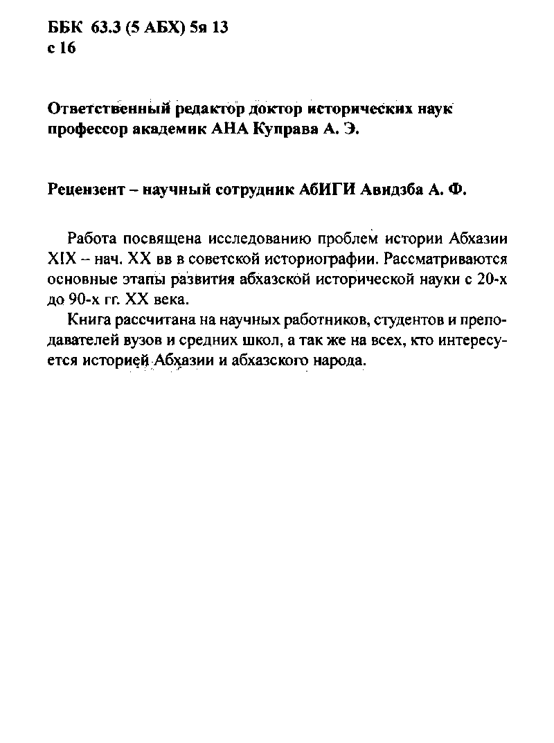 Вопросы истории Абхазии XIX - начала XX века в Абхазской Советской историографии