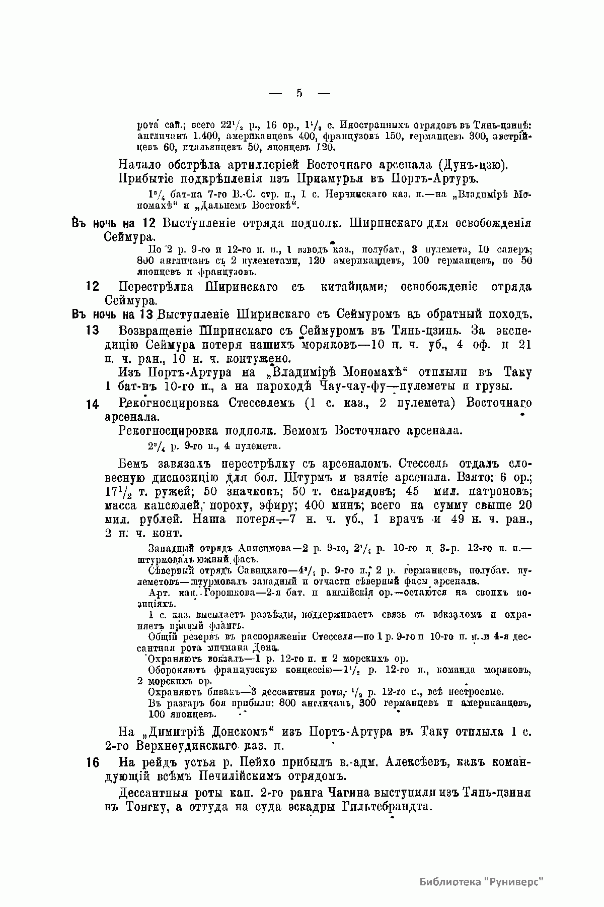 Хронологическiй Указатель военныхъ дѣйствiй русской армiи и флота. Томъ V. 1900-1905 г.г.