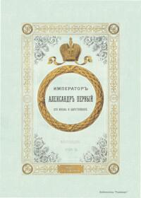 Сочинение Н. К. Шильдера «Император Александр I, его жизнь и царствование» является одной из богато иллюстрированных и основанных на большом фактическом материале книг, посвященных российским императорам. Оно состоит из четырех частей. Первая часть описывает детство и молодые годы Александра до восшествия его на престол; вторая — эпоху преобразований с 1801 по 1810 год; третья — борьбу с Францией с 1810 по 1816 год; четвертая — эпоху реакции с 1816 по 1825 год. Труд написан легко и увлекательно; главные его достоинства — искусный психологический анализ, тщательная и точная критика историографии и источников, обилие ранее неизвестных материалов по политической, военной, дипломатической истории, введенных в научный оборот. Книга углубляет историческое понимание эпохи Александра I. Иллюстрации выполнены с редких оригиналов собрания гравюр П. Я. Дашкова в техниках хромолитографии, фототипии, гелиогравюры, цинкографии, копии с картин, гравюр на дереве и фотографии. В издание вошли портреты: Императора Александра I, Великой княжны Александры Павловны, Великой княгини Анны Федоровны, графа Аракчеева, князя Безбородко, графа Строганова, князя Чарторижского, барона Штейна, Императора Александра Павловича, принца прусского Вильгельма, князя Волконского, князя Голицына, барона Кампенгауза и многих других, а также виды местностей, зданий, сцены баталий, бытовые рисунки. Николай Карлович Шильдер (1842–1902), русский историк, генерал-лейтенант, член-корреспондент Петербургской Академии наук. Окончил Пажеский корпус и Николаевскую инженерную академию.