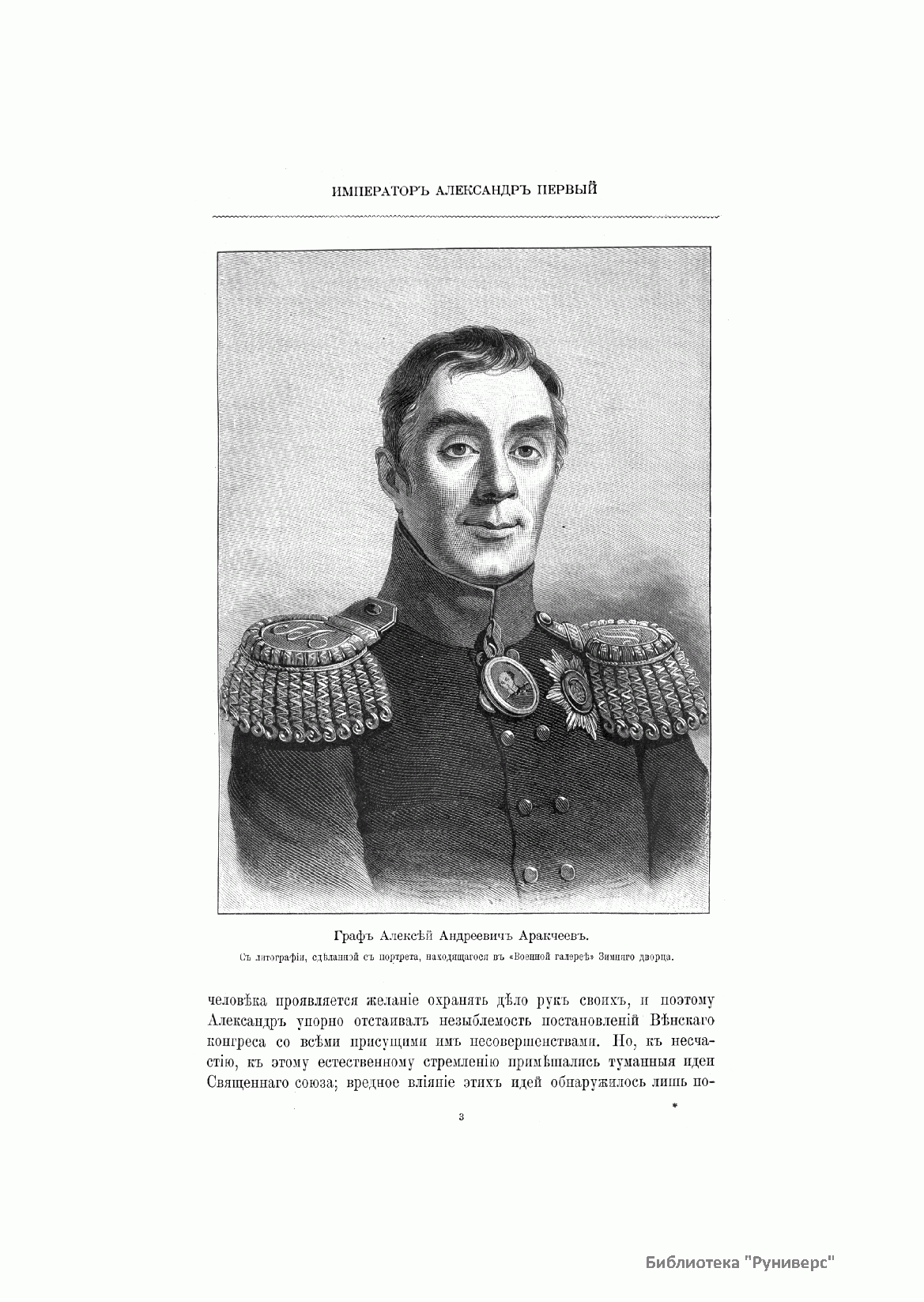 Сочинение Н. К. Шильдера «Император Александр I, его жизнь и царствование» является одной из богато иллюстрированных и основанных на большом фактическом материале книг, посвященных российским императорам. Оно состоит из четырех частей. Первая часть описывает детство и молодые годы Александра до восшествия его на престол; вторая — эпоху преобразований с 1801 по 1810 год; третья — борьбу с Францией с 1810 по 1816 год; четвертая — эпоху реакции с 1816 по 1825 год. Труд написан легко и увлекательно; главные его достоинства — искусный психологический анализ, тщательная и точная критика историографии и источников, обилие ранее неизвестных материалов по политической, военной, дипломатической истории, введенных в научный оборот. Книга углубляет историческое понимание эпохи Александра I. Иллюстрации выполнены с редких оригиналов собрания гравюр П. Я. Дашкова в техниках хромолитографии, фототипии, гелиогравюры, цинкографии, копии с картин, гравюр на дереве и фотографии. В издание вошли портреты: Императора Александра I, Великой княжны Александры Павловны, Великой княгини Анны Федоровны, графа Аракчеева, князя Безбородко, графа Строганова, князя Чарторижского, барона Штейна, Императора Александра Павловича, принца прусского Вильгельма, князя Волконского, князя Голицына, барона Кампенгауза и многих других, а также виды местностей, зданий, сцены баталий, бытовые рисунки. Николай Карлович Шильдер (1842–1902), русский историк, генерал-лейтенант, член-корреспондент Петербургской Академии наук. Окончил Пажеский корпус и Николаевскую инженерную академию.