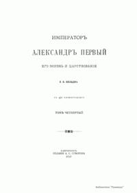 Императоръ Александръ Первый. Его жизнь и царствованiе. Томъ четвертый