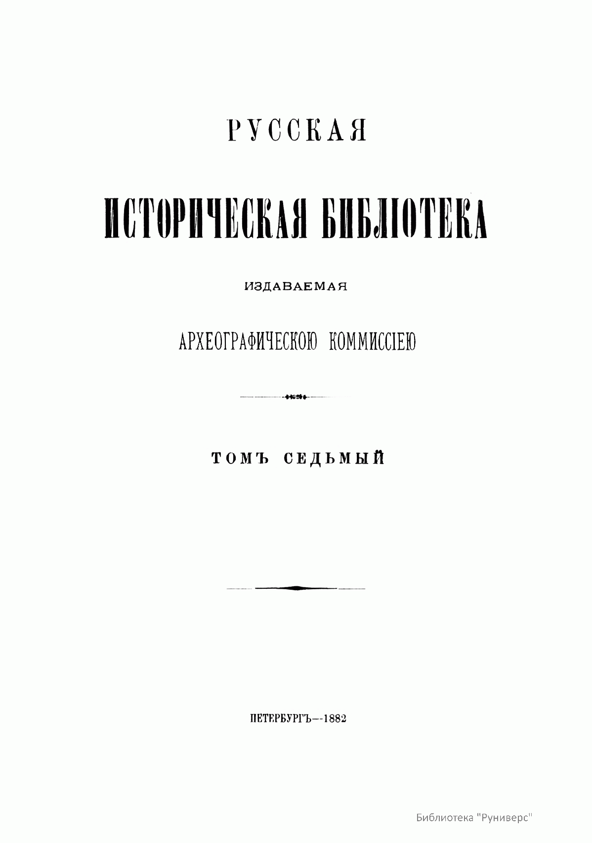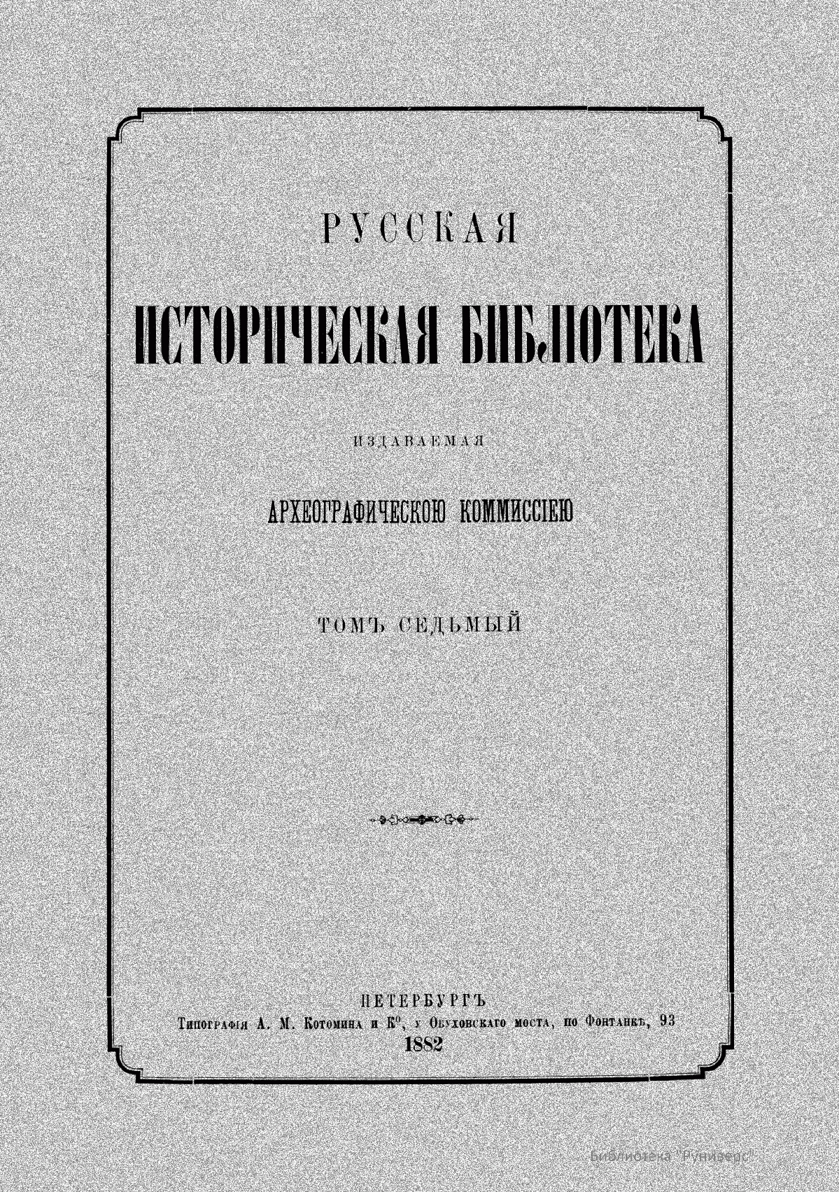 Русская историческая библiотека, издаваемая Археографическою комиссiею. Томъ седьмый