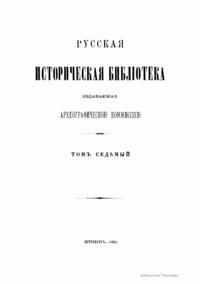 Русская историческая библиотека, издаваемая Археографической комиссией. Том седьмой