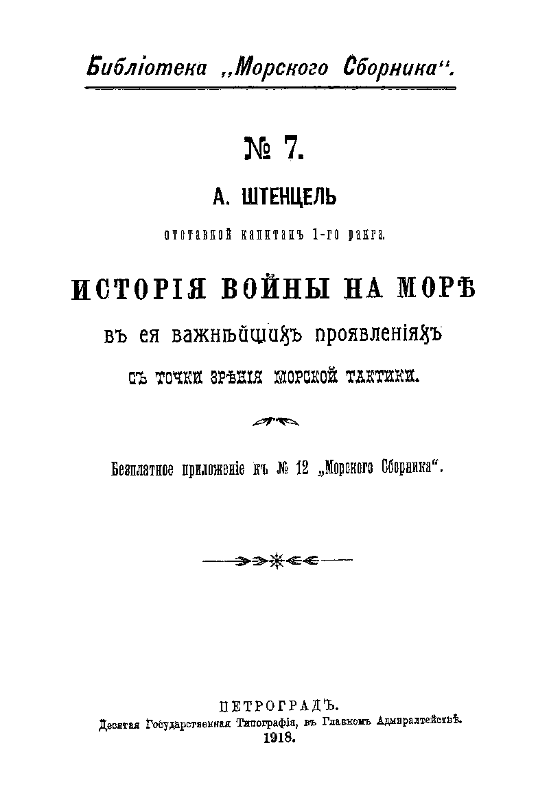 Классический фундаментальный 5-ти томный труд германского военного историка адмирала Альфреда Штенцеля, посвященный истории вооруженной борьбы на море, охватывающий огромный период от древности до середины XIX столетия, выдержал множество переизданий на разных языках в течение более 150 лет.