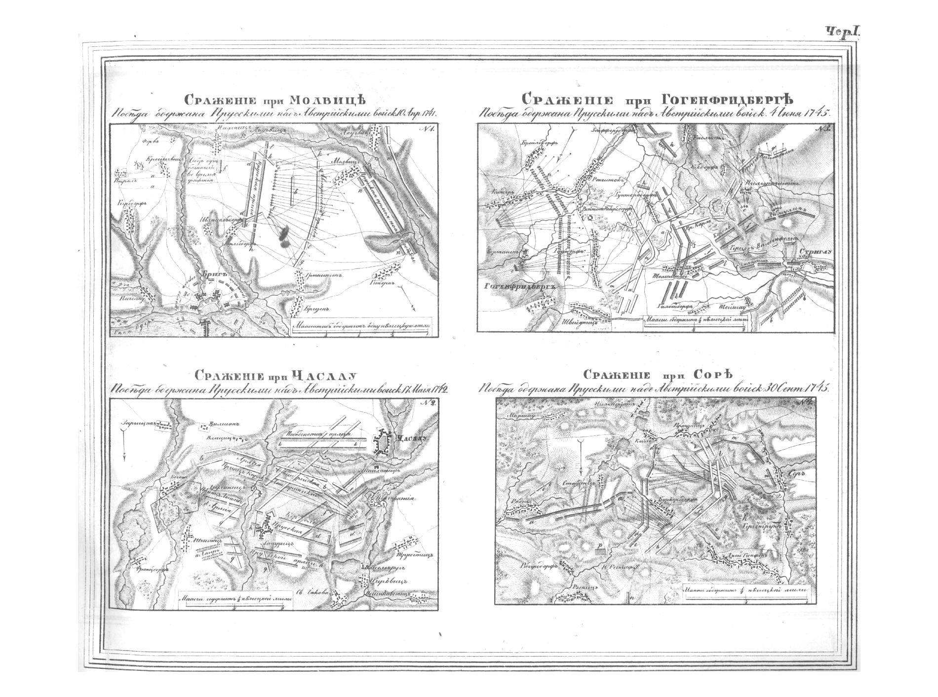 В атласе, подготовленном выдающимся военным теоретиком 1-й половины XIX века генералом на русской службе бароном Г.В. Жомини, выступившим инициатором создания Императорской Академии Генштаба, представлены схемы сражений эпохи Семилетней войны в Европе середины XVIII столетия, иллюстрирующие эволюцию основ военной стратегии армий стран-участниц, главным образом прусской армии Фридриха II Великого.