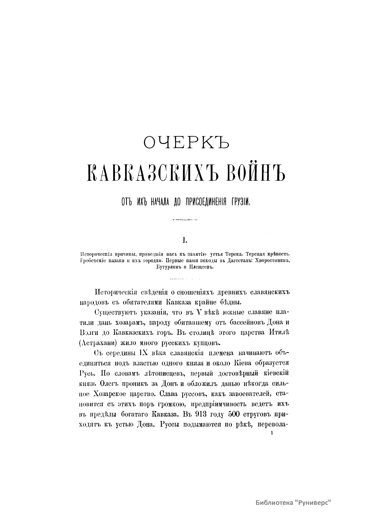 Историческій очеркъ кавказскихъ войнъ отъ ихъ начала до присоединенія Грузiи