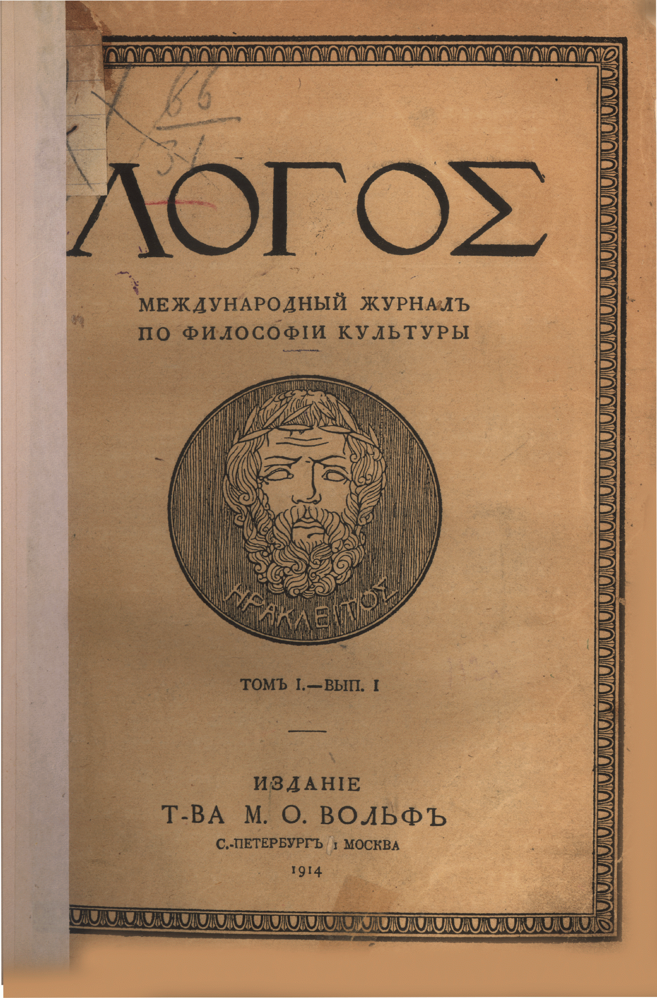 Логосъ. Международный ежегодникъ по философiи культуры. 1914. Томъ I - выпуск 1