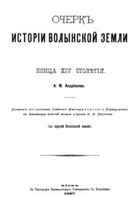 На историко-филологическом факультете Киевского университета св. Владимира в конце XIX в. велась серьёзная научная работа по изучению истории Древней Руси. Результатом этой работы явилась серия областных монографий. В эту серию входит и предлагаемое исследование Андрияшева А. М.