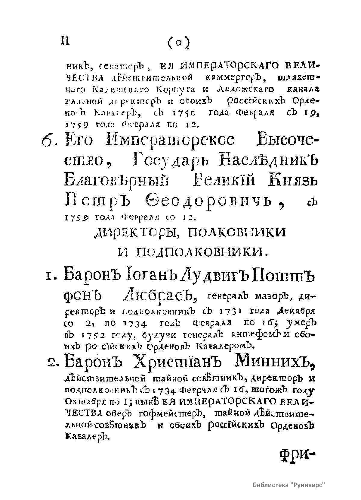 Имянной списокъ всѣмъ бывшимъ и нынѣ находящемся въ Сухопутномъ Шляхетномъ кадетскомъ корпусѣ штабъ-оберъ-офицѣрамъ и кадетамъ