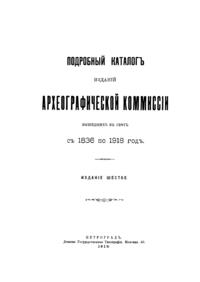 Плодами трудов Археографической комиссии стали многочисленные многотомные издания, которые включали в себя важнейшие документы по истории России. В 1918 году вышло шестое издание аннотированного каталога, наиболее полно отразившеевсе труды комиссии с 1836 года.