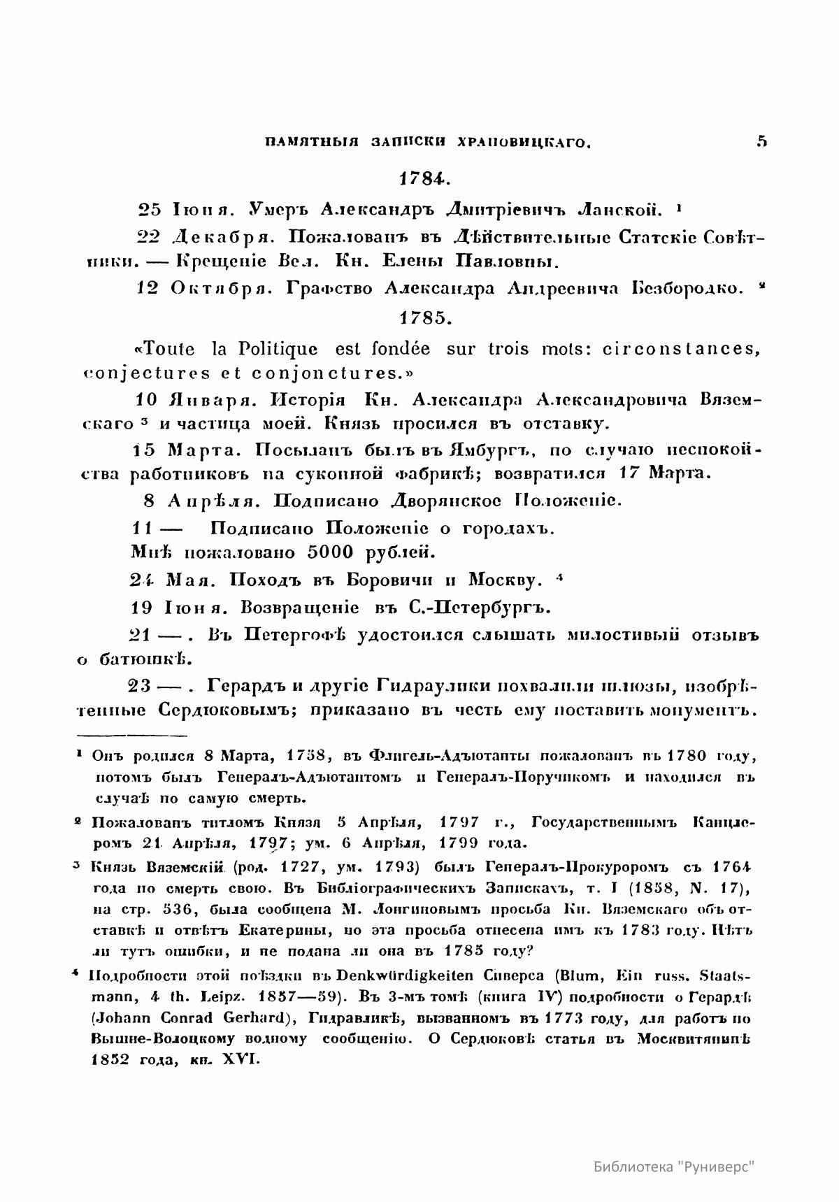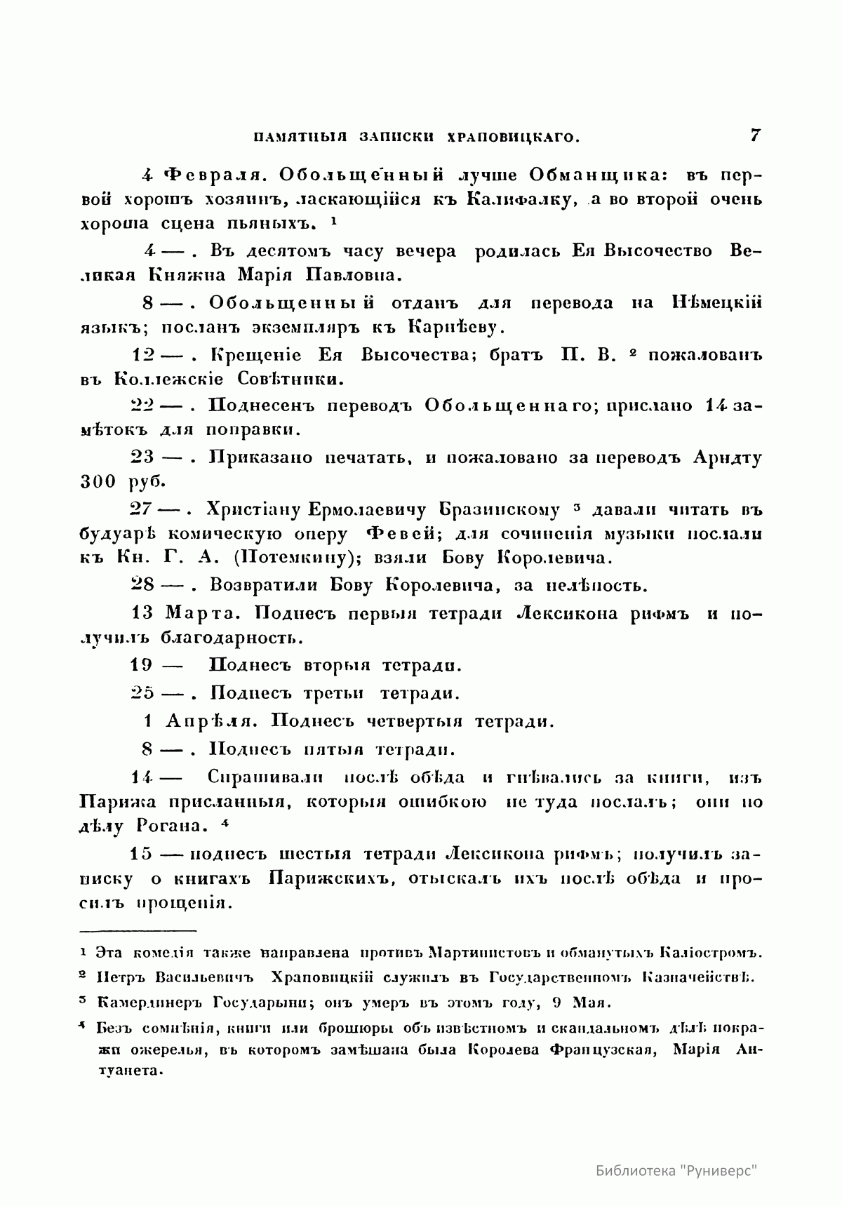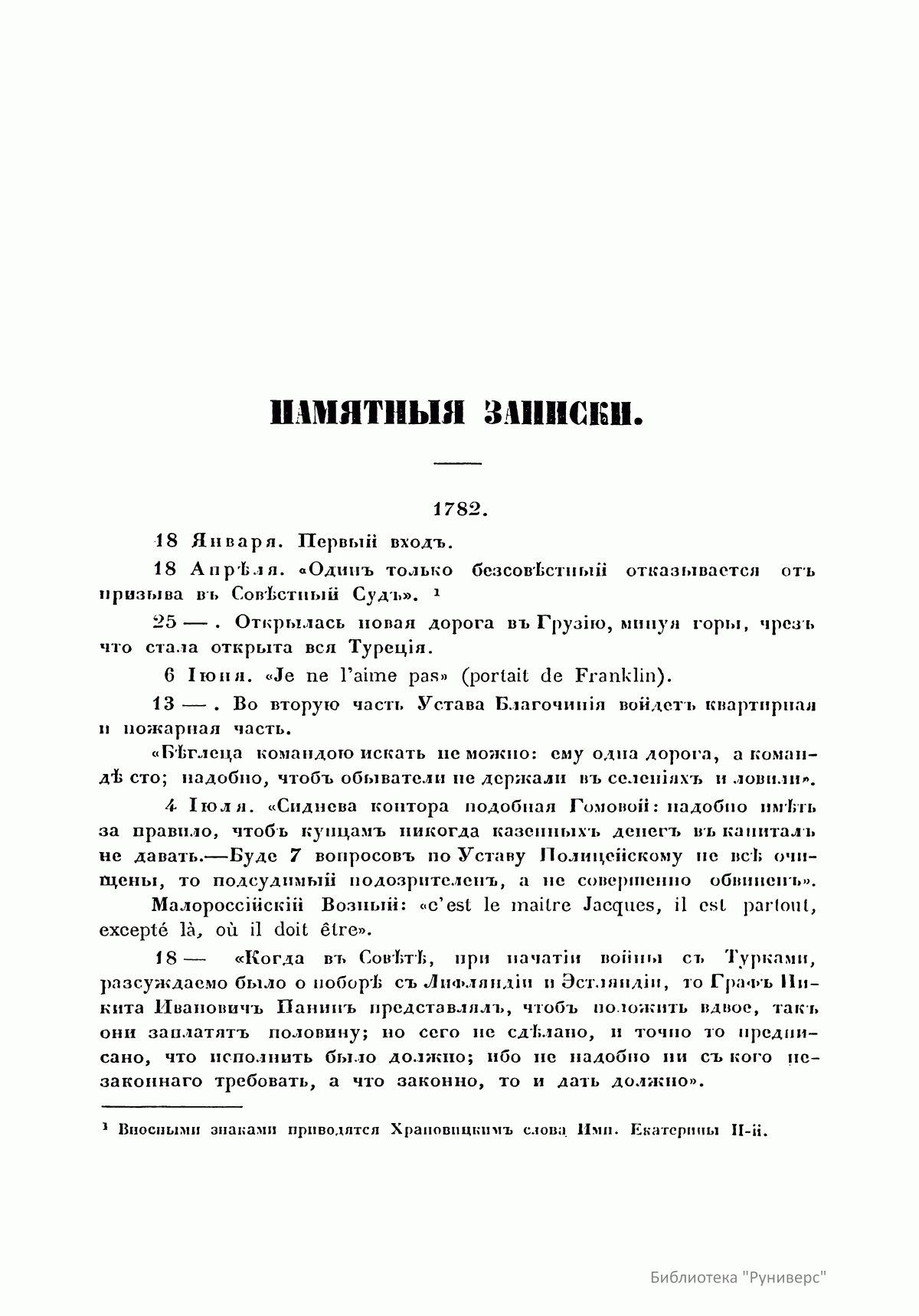 Памятные записки А.В. Храповицкого, статс-секретаря императрицы Екатерины Второй