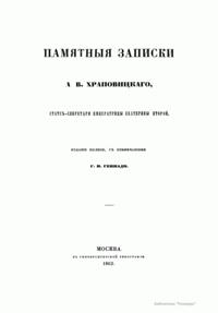 Памятныя записки А.В. Храповицкаго, статсъ-секретаря императрицы Екатерины Второй