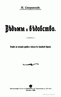 Российский филолог, историк, педагог Н.В.Сперанского (1861-1921) исследовал уходящие в Средневековье истоки системы образования, являвшейся одним из важных факторов, сформировавших европейскую цивилизацию. Напечатал ряд работ по истории европейской школы; главные из них: "Очерки по истории народной школы в Западной Европе" (1898), "Очерк истории средней школы в Германии" (1898), но широкую известность получила книга "Ведьмы и ведовство" (1906). Ему удалось привлечь огромный фактический материал, основанный на устных преданиях, демонологических сочинениях, трактатах по магии и оккультизму, документах инквизиции, законодательстве. Он показывает, как формировались и развивались народные и церковные представления о ведьмах и их «хозяине» Сатане в ходе борьбы церкви с еретическими движениями средневековой Европы. В книге рассматривается выискивание и преследование ведьм европейским обществом и церковью в XV-XVII веках, принявшее форму массовой социальной истерии. На основе устных преданий, сочинений по магии, демонологии и оккультизму, документов инквизиции автор приходит к выводу, что лишь усилия светской власти по уменьшению ведовских процессов и распространение просвещения смогли переломить ситуацию и преодолеть страх перед потусторонними силами.