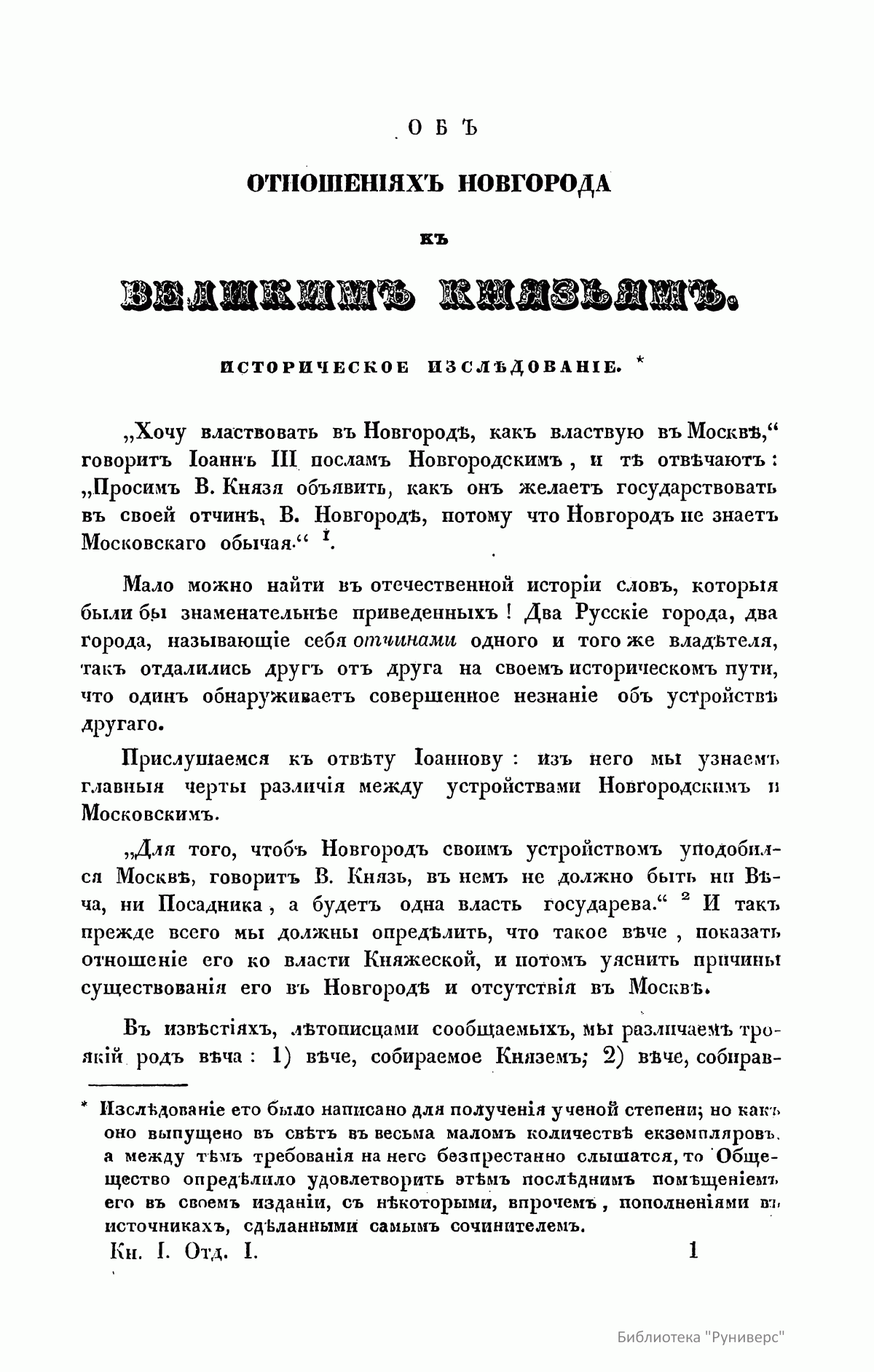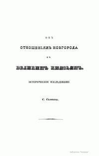 Объ отношенiяхъ Новгорода къ великимъ князьямъ