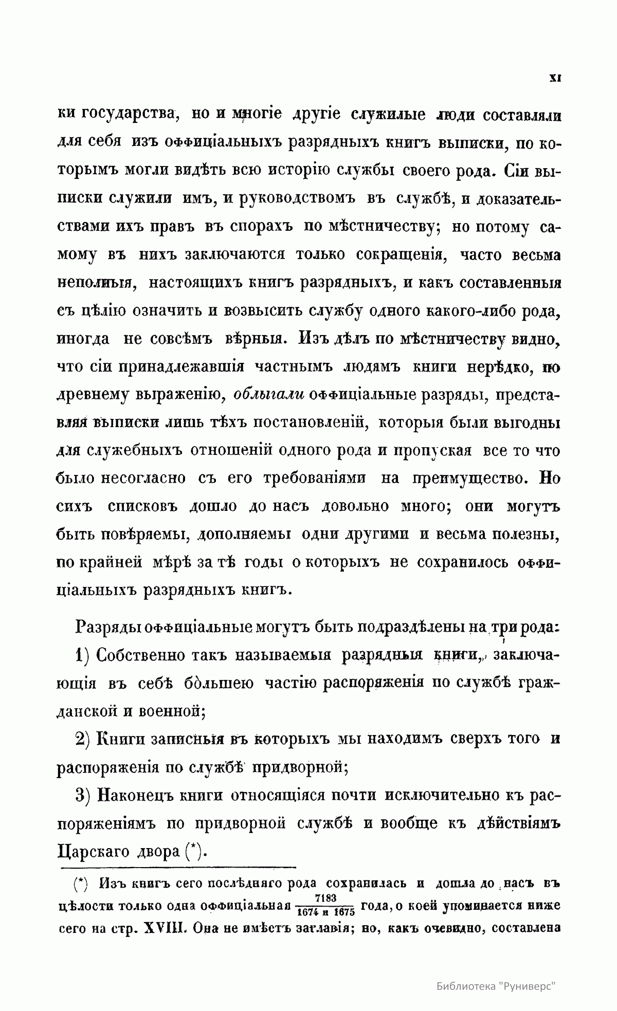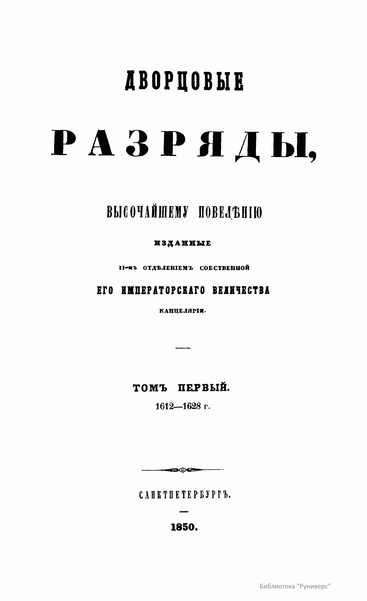 В книге издан текст разрядных книг, содержащих записи за 1612 – 1700. Разрядные книги (или разряды) – это книги записей о распоряжениях по военной, гражданской и придворной службе. По мнению издателей, они появились во время Ивана III и продолжались до новых установлений Петра I – таким образом, они составили полную летопись правительственной и служебной деятельности в России в Московский период русской истории. «Дворцовые разряды» – книги, относящиеся почти исключительно к распоряжениям по придворной службе и вообще к действиям царского двора. В начале первого тома помещен отрывок из «Повести» с описанием освобождения Москвы от поляков в 1612 г., приписываемый И. М. Катыреву-Ростовскому. В первом томе опубликованы дворцовые разряды начиная со вступления царя Михаила Федоровича на престол в 1613 году и заканчивая годом рождения царя Алексея Михайловича в 1628 году. Во второй том входят разряды второй половины государствования царя и великого князя Михаила Федоровича до его смерти и восшествия на престол Алексея Михайловича – с 1628-го по 12 июля 1645 года. В третьем томе находятся все разряды, принадлежащие государствованию царя и великого князя Алексея Михайловича со времени вступления его на престол 12 июля 1645 года до его кончины 30 января 1676 года. В дополнении к третьему тому публикуются разряды, относящиеся к времени Алексея Михайловича, найденные уже после издания третьего тома. В последний, четвертый, том входят разряды, которые относятся к государствованию царя Федора Алексеевича; царствованию Иоанна и Петра Алексеевичей под влиянием и главным управлением сестры их – царевны Софьи; первым годам независимого державства Петра Великого – с 9 сентября 1676-го по 17 октября 1700 года.