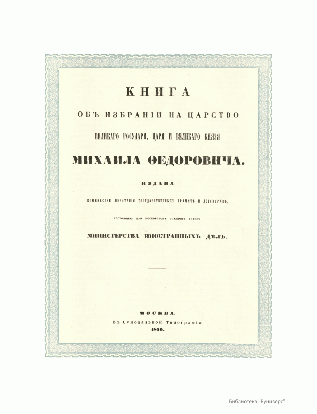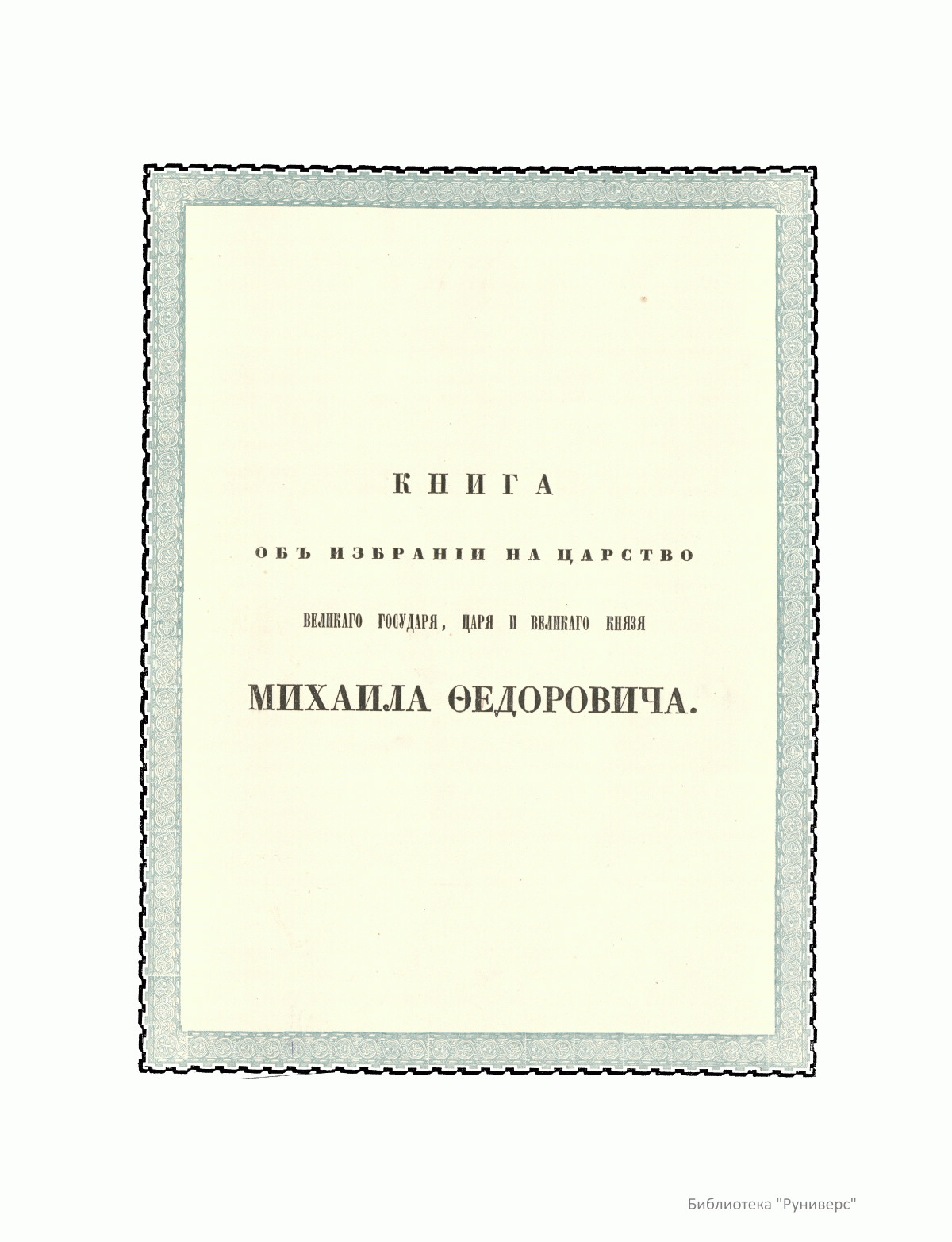 Книга объ избранiи на царство Великаго Государя, Царя и Великаго Князя Михаила Ѳедоровича