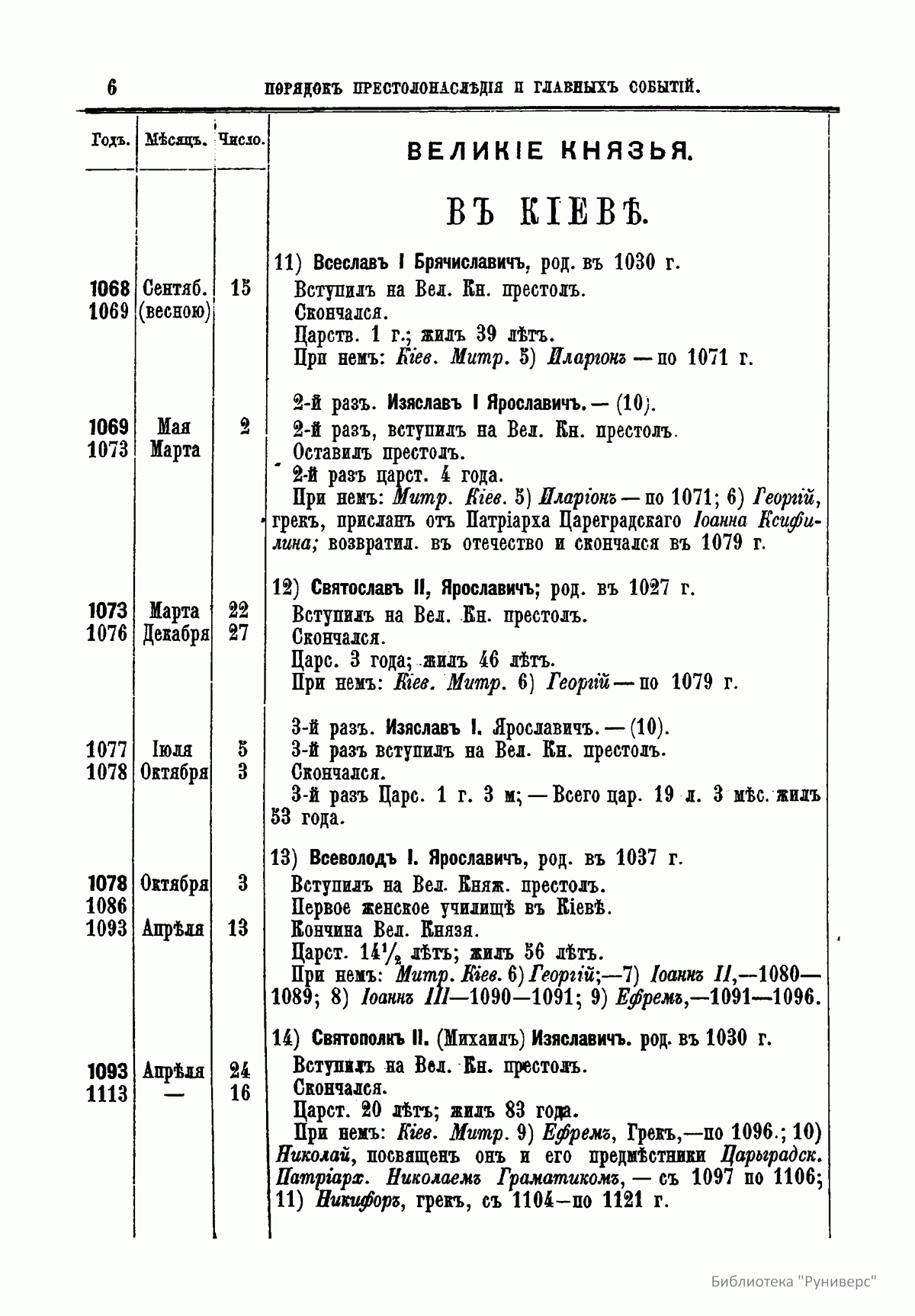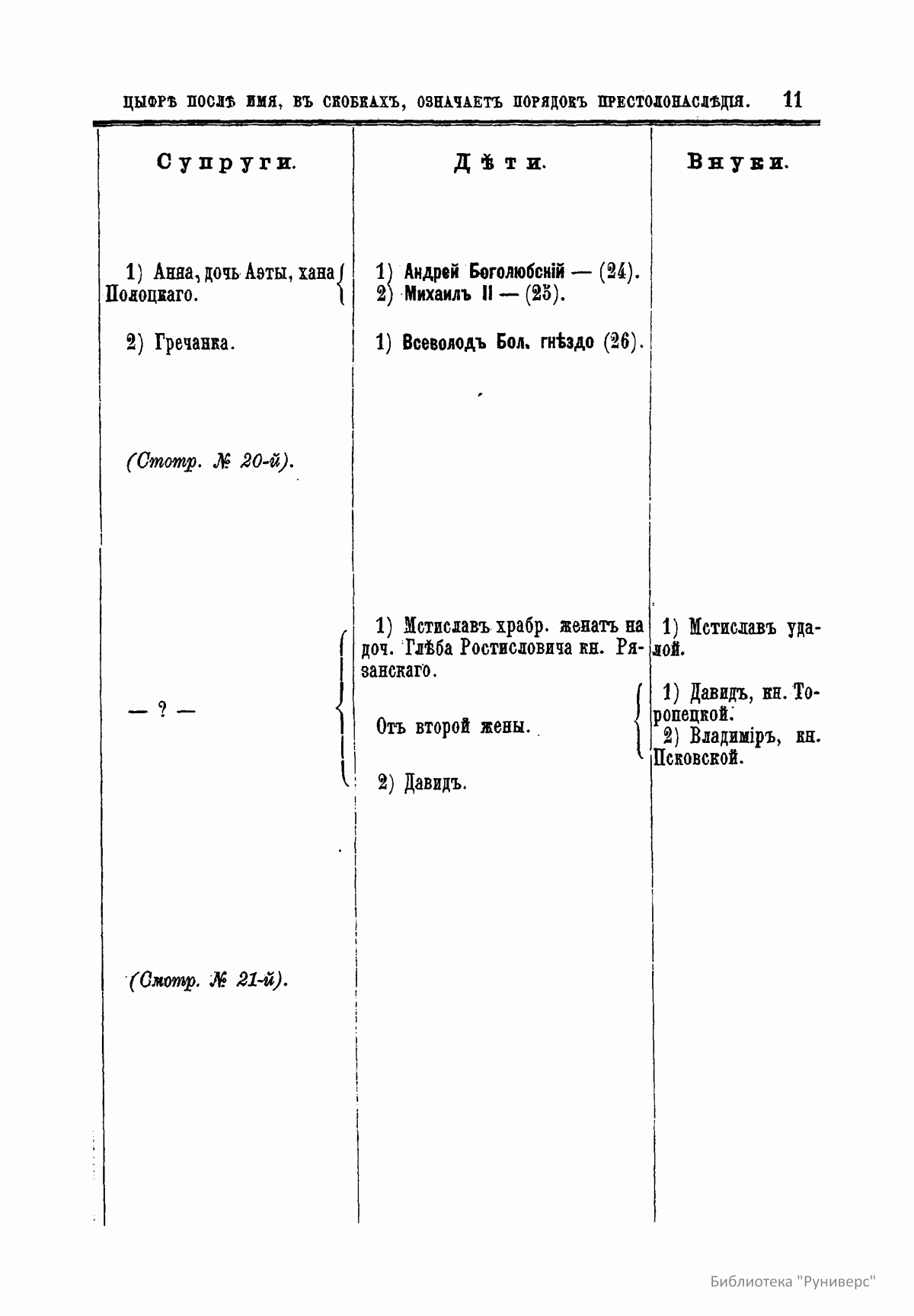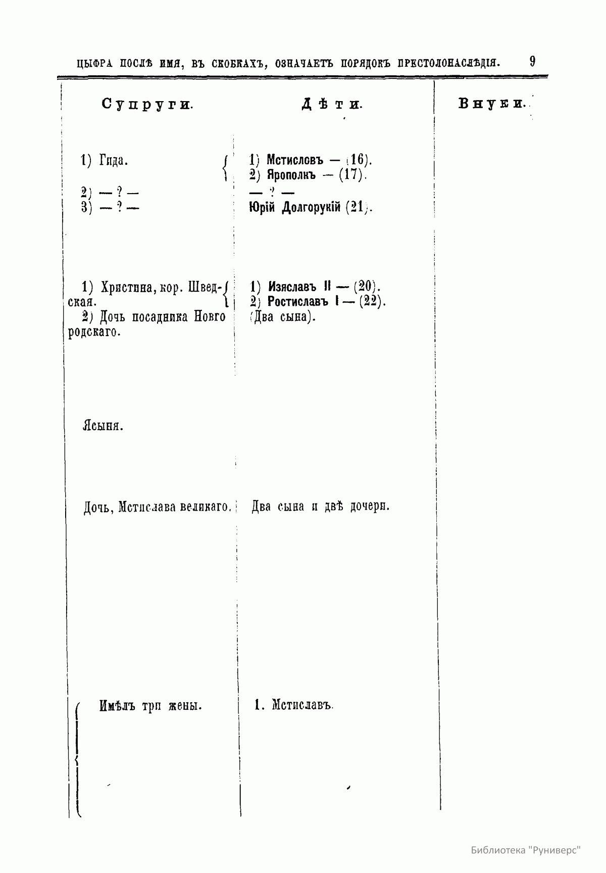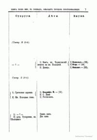 В книге опубликованы две таблицы. В них указан порядок престолонаследия Дома Рюриковичей и Дома Романовых до Александра II, а также сообщаются все основные события, происходившие при великих князьях и царях.