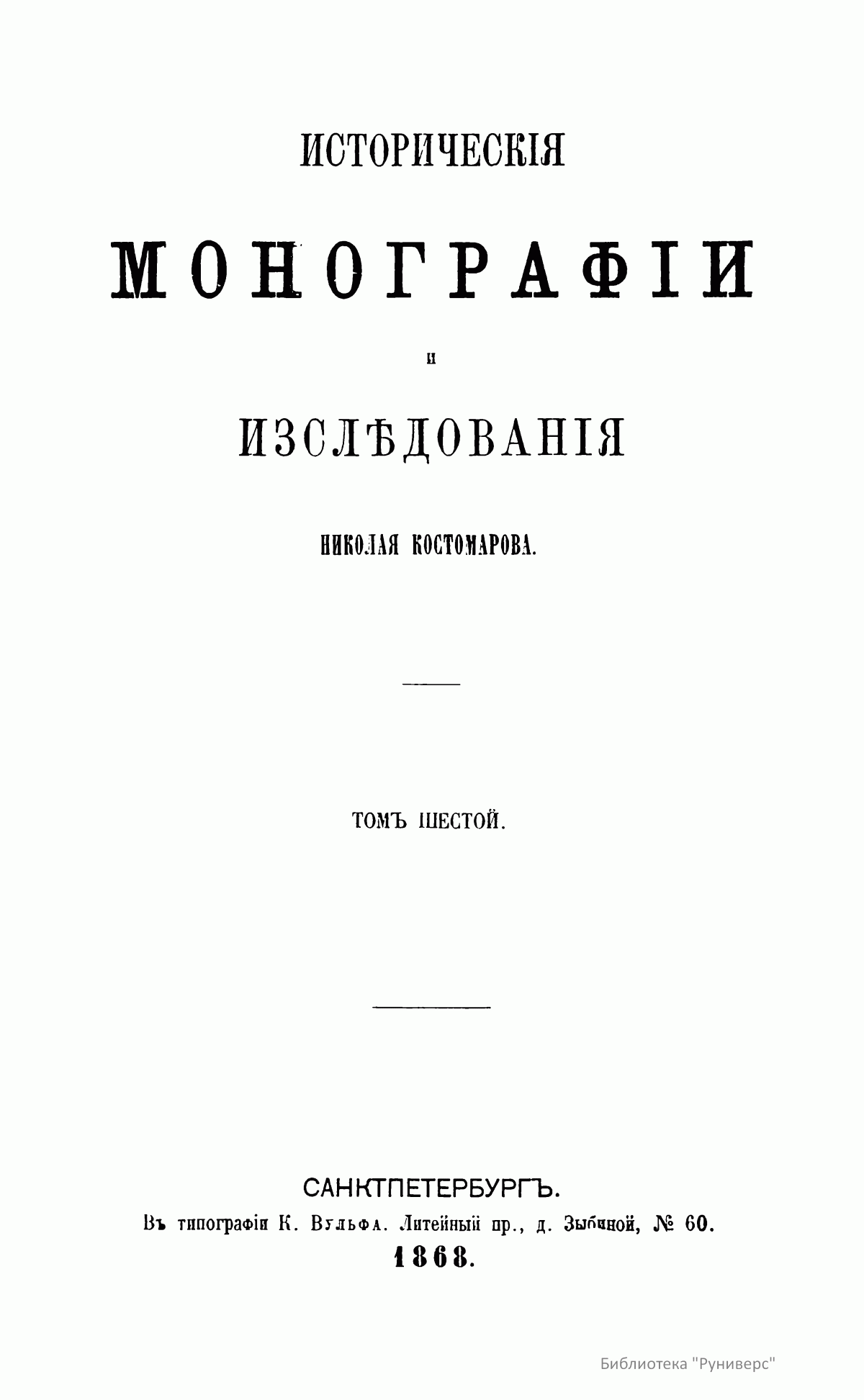Историческiя монографiи и изслѣдованiя Николая Костомарова. Томъ шестой