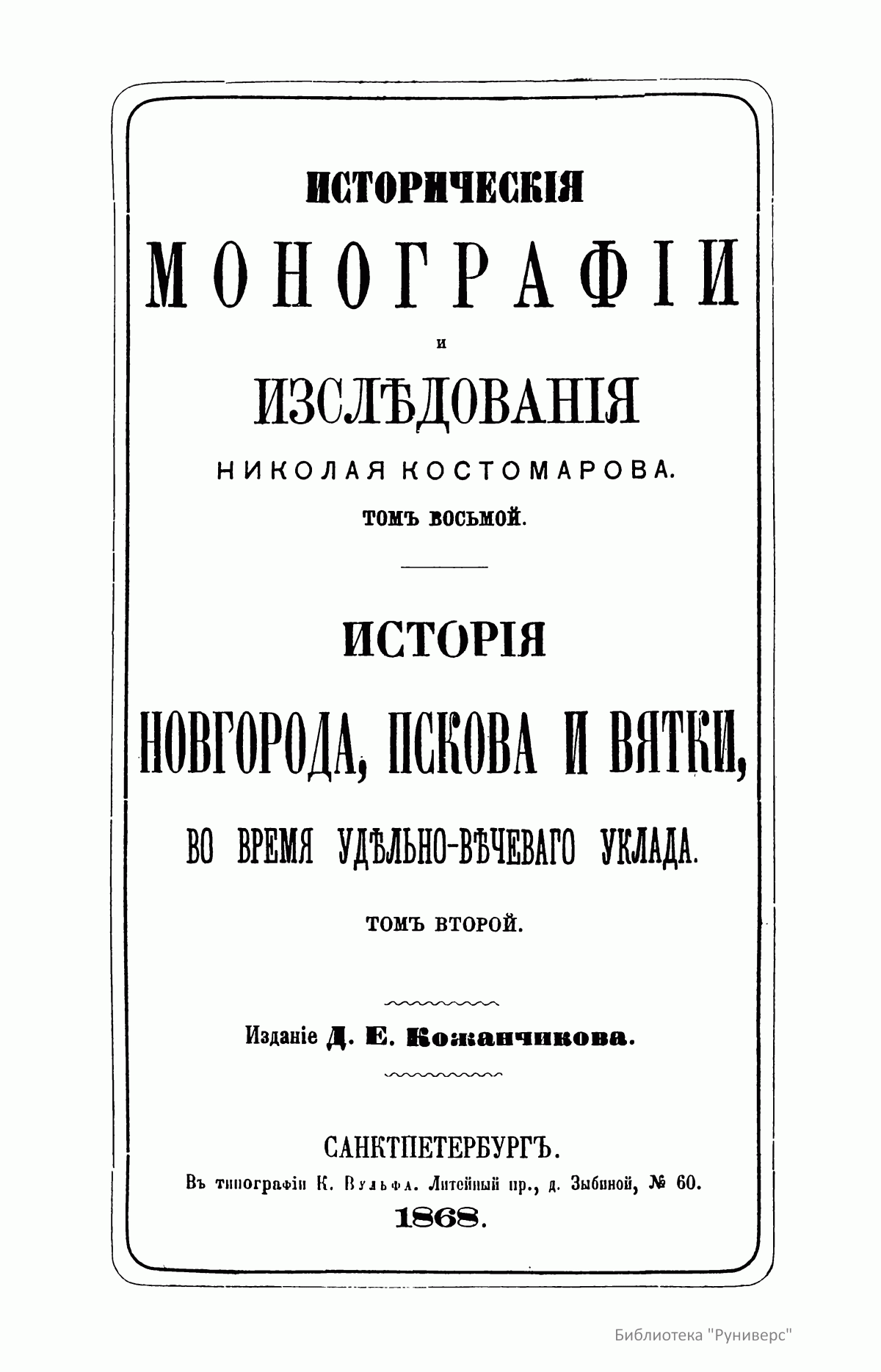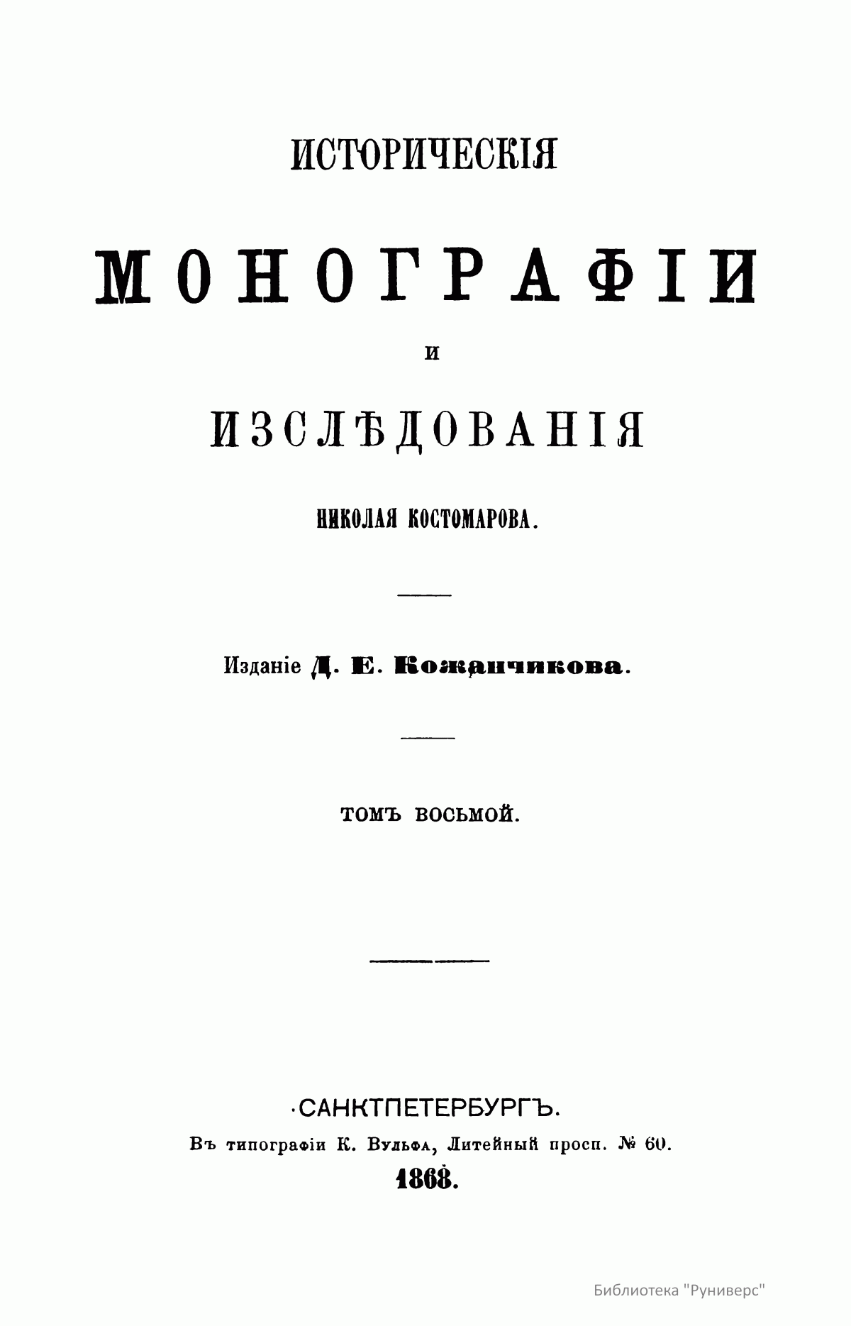 Историческiя монографiи и изслѣдованiя Николая Костомарова. Томъ восьмой