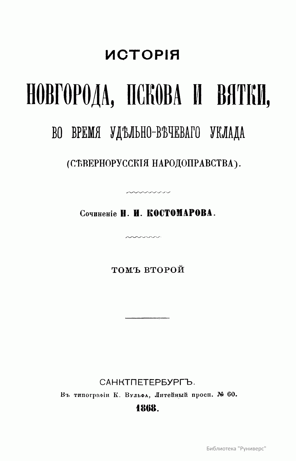 Перед читателем прижизненное издание трудов Н. И. Костомарова, в котором удачно соединялись историк-мыслитель и художник, что обеспечило ему не только одно из первых мест в ряду русских историков, но и наибольшую популярность среди читающей публики. Глубоко вдумываясь, почти вживаясь в изучаемую им старину, он воспроизводил ее в своих работах такими яркими красками, в таких выпуклых образах, что она надолго оставалась в памяти читателя. В первых трех томах и в двенадцатом томе опубликованы различные статьи. 1 – «Мысли о федеративном начале древней Руси»; «Черты народной южнорусской истории»; «Две русские народности»; «Мистическая повесть о Нифонте. Памятник русской литературы»; «Легенда о кровосмесителе»; «О значении Великого Новгорода»; «Должно ли считать Бориса Годунова основателем крепостного права?»; «Великорусские религиозные вольнодумцы в XVI веке. – Матвей Башкин и его соучастник Феодосий Косой»; «Иван Сусанин. Историческое исследование». 2 – «Иван Свирговский, украинский казацкий гетман XVI века»; «Гетманство Выговского»; «Бунт Стеньки Разина»; «По поводу мыслей светского человека, о книге «Сельское духовенство». 3 – «Куликовская битва»; «Ливонская война»; «Южная Русь в конце XVI века»; «Литовская народная поэзия»; «Об отношении русской истории к географии и этнографии». 12 – «Начало единодержавия в Древней Руси»; «Гетманство Юрия Хмельницкого»; «Церковно-историческая критика в XVII веке»; «История раскола у раскольников»; «Воспоминания о молоканах». Четвертый, пятый и шестой тома посвящены Смутному времени московского государства в начале XVII столетия. Седьмой и восьмой – истории Новгорода, Пскова и Вятки во время удельно-вечевого уклада. Девятый, десятый и одиннадцатый – Богдану Хмельницкому.