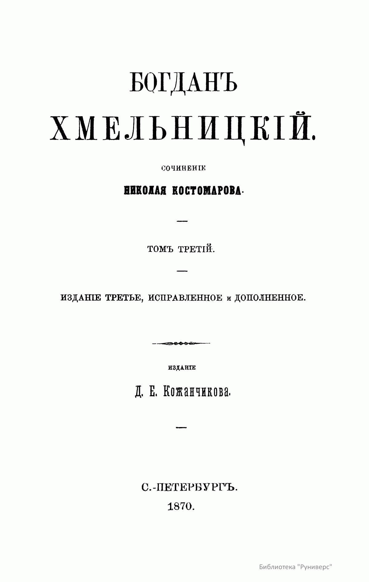 Историческiя монографiи и изслѣдованiя Николая Костомарова. Томъ одинадцатый