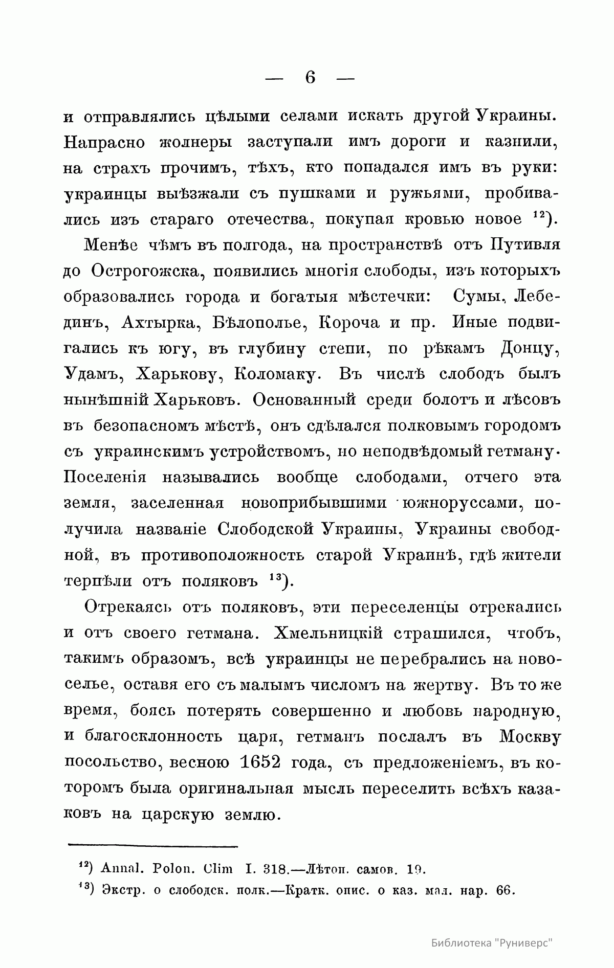 Перед читателем прижизненное издание трудов Н. И. Костомарова, в котором удачно соединялись историк-мыслитель и художник, что обеспечило ему не только одно из первых мест в ряду русских историков, но и наибольшую популярность среди читающей публики. Глубоко вдумываясь, почти вживаясь в изучаемую им старину, он воспроизводил ее в своих работах такими яркими красками, в таких выпуклых образах, что она надолго оставалась в памяти читателя. В первых трех томах и в двенадцатом томе опубликованы различные статьи. 1 – «Мысли о федеративном начале древней Руси»; «Черты народной южнорусской истории»; «Две русские народности»; «Мистическая повесть о Нифонте. Памятник русской литературы»; «Легенда о кровосмесителе»; «О значении Великого Новгорода»; «Должно ли считать Бориса Годунова основателем крепостного права?»; «Великорусские религиозные вольнодумцы в XVI веке. – Матвей Башкин и его соучастник Феодосий Косой»; «Иван Сусанин. Историческое исследование». 2 – «Иван Свирговский, украинский казацкий гетман XVI века»; «Гетманство Выговского»; «Бунт Стеньки Разина»; «По поводу мыслей светского человека, о книге «Сельское духовенство». 3 – «Куликовская битва»; «Ливонская война»; «Южная Русь в конце XVI века»; «Литовская народная поэзия»; «Об отношении русской истории к географии и этнографии». 12 – «Начало единодержавия в Древней Руси»; «Гетманство Юрия Хмельницкого»; «Церковно-историческая критика в XVII веке»; «История раскола у раскольников»; «Воспоминания о молоканах». Четвертый, пятый и шестой тома посвящены Смутному времени московского государства в начале XVII столетия. Седьмой и восьмой – истории Новгорода, Пскова и Вятки во время удельно-вечевого уклада. Девятый, десятый и одиннадцатый – Богдану Хмельницкому.