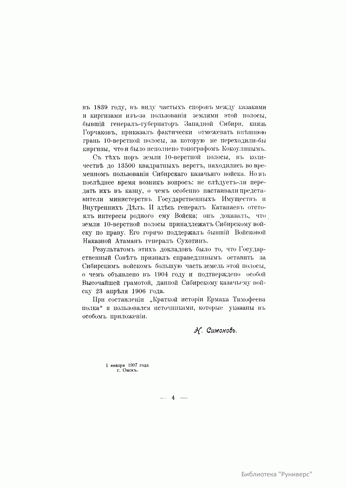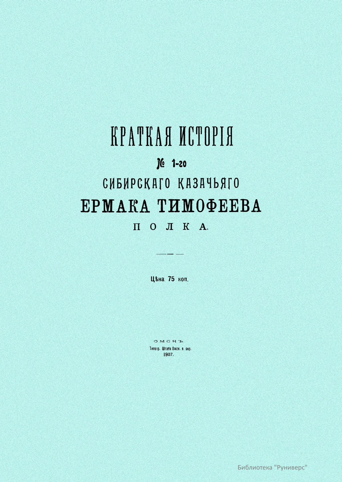 Краткая исторiя № 1-го сибирскаго казачьяго Ермака Тимофеева полка