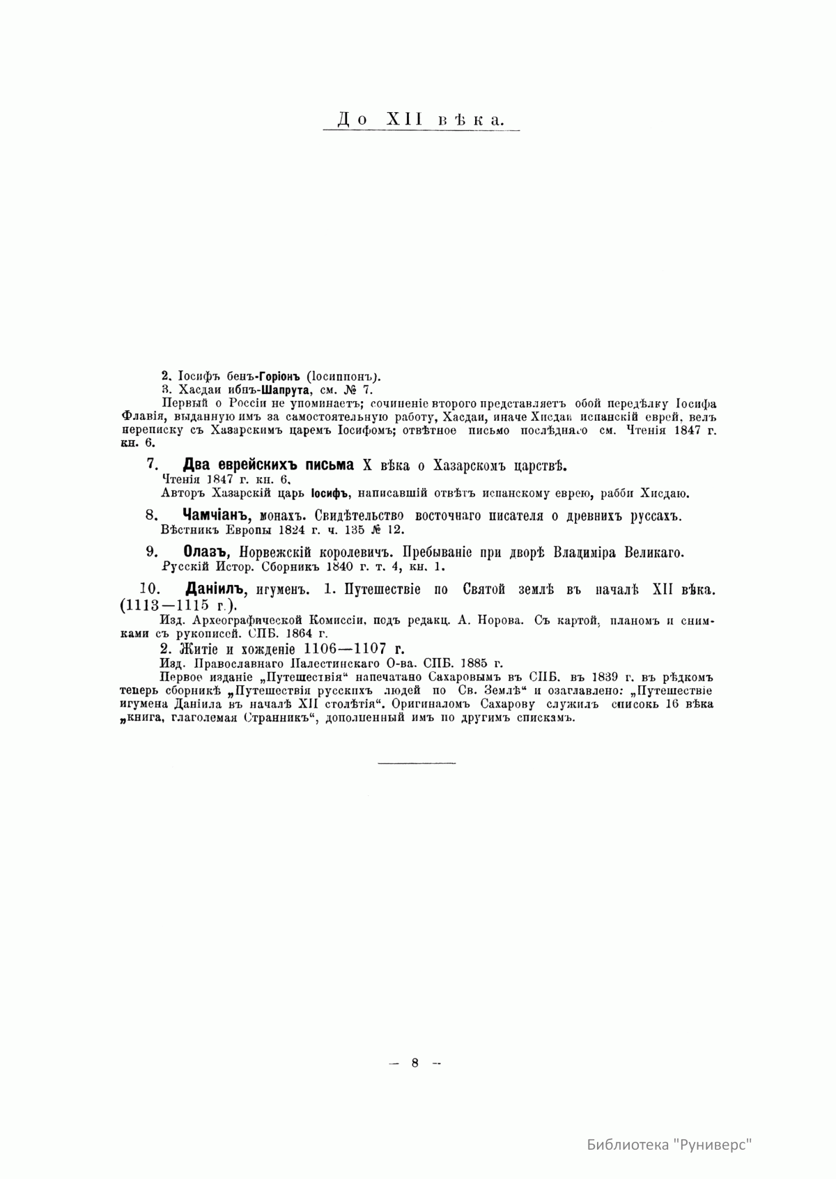 Обзоръ записокъ, дневниковъ, воспоминанiй, писемъ и путешествiй, относящихся къ исторiи Россiи и напечатанныхъ на русскомъ языкѣ