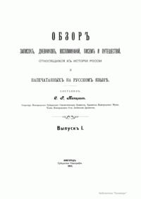 Обзор записок, дневников, воспоминаний, писем и путешествий, относящихся к истории России и напечатанных на русском языке